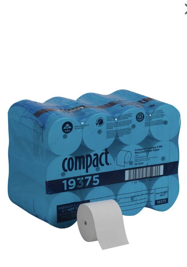 ZelleSave BIG on bulk toilet paper! I’m selling a case of Compact Recycled Coreless Toilet Paper – 2-Ply, 1000 sheets per roll, 36 rolls per carton.