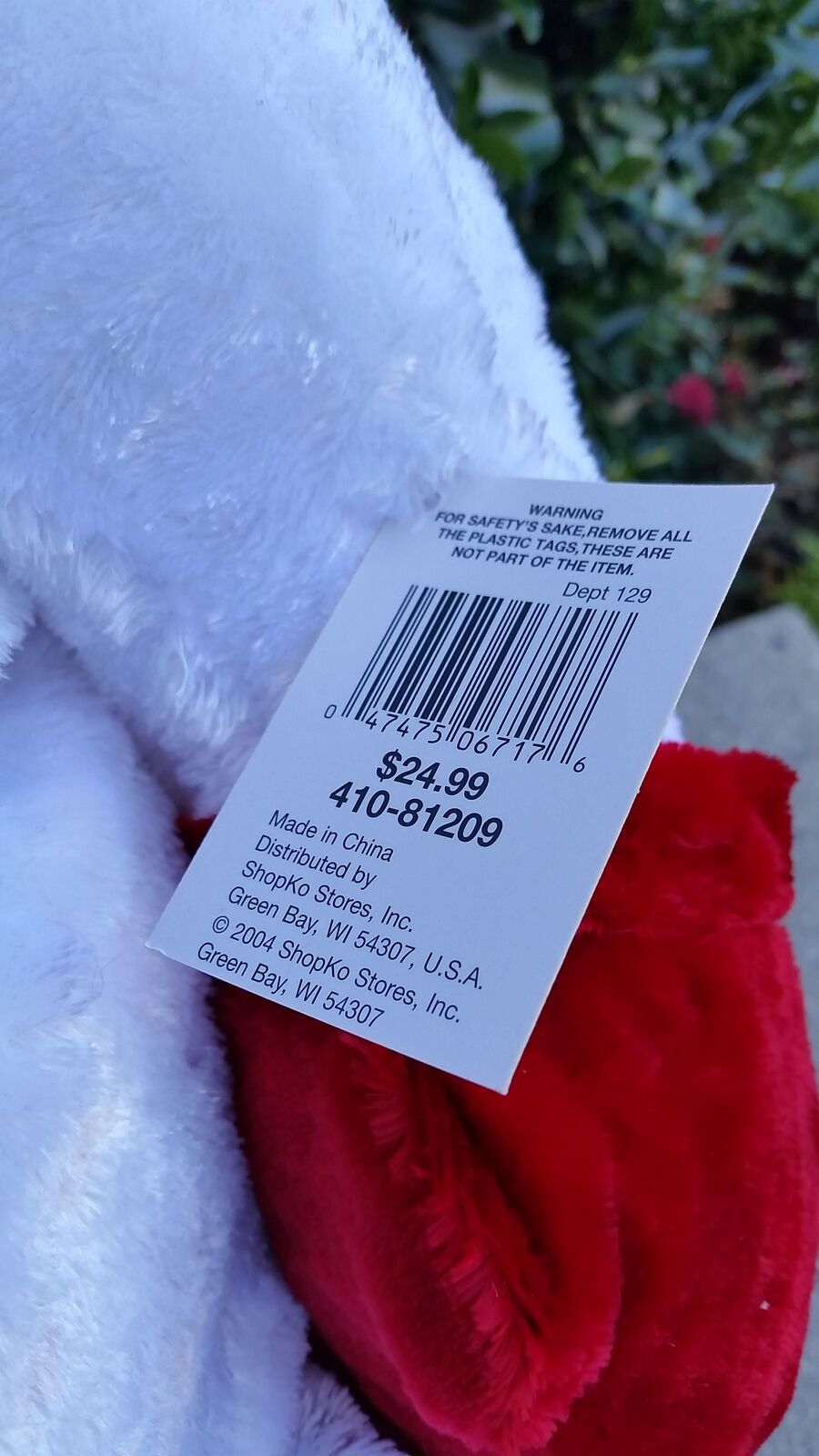 Brand NEW and never displayed. The tags are still on this guy. He needs adopting into a new home where he gets all the love and attention he needs. He's super cuddly and soft, and always has a smile on his face. Perfect Christmas gift!
