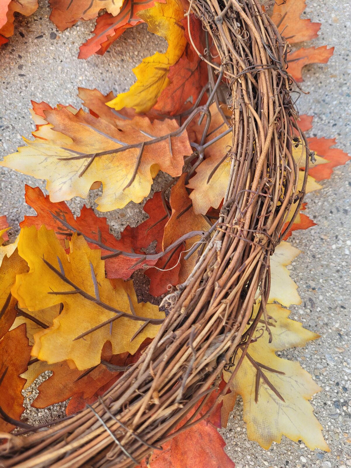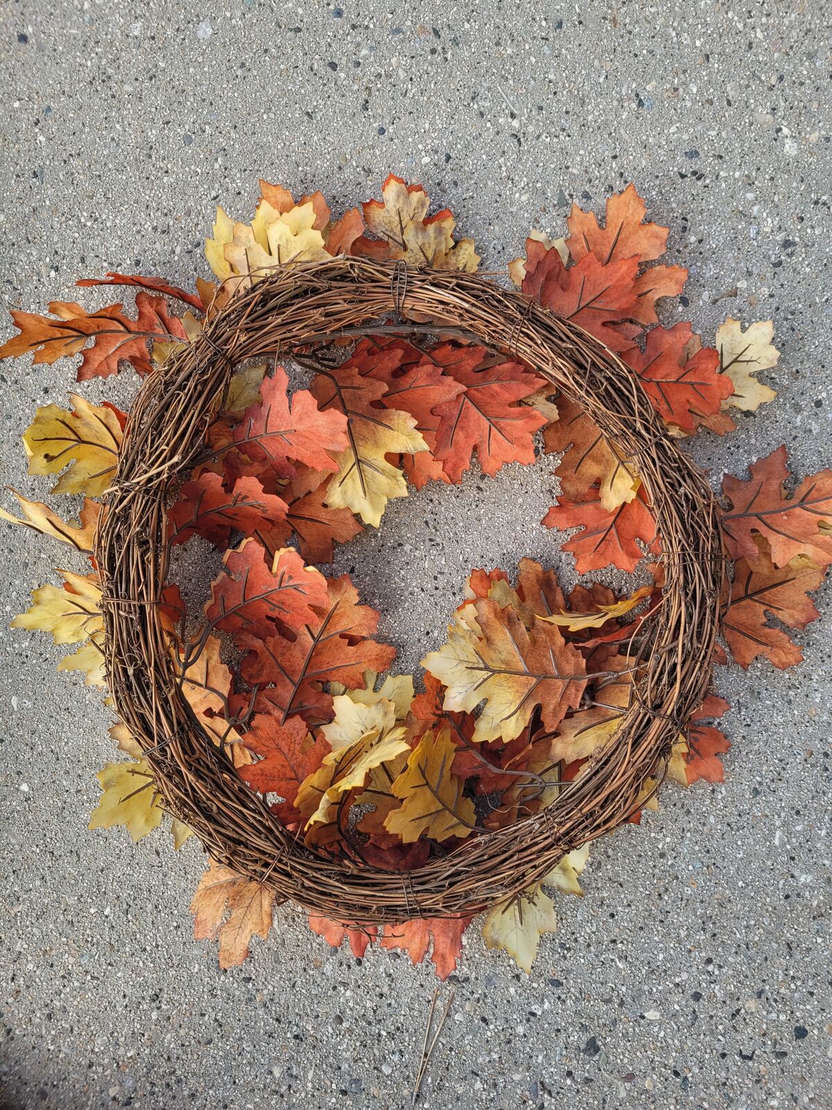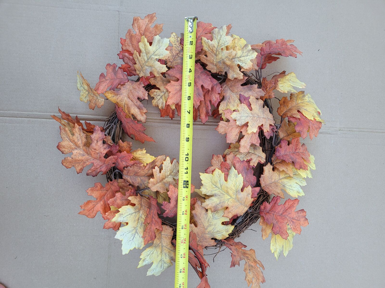 This is just the wreath you need to celebrate this beautiful fall we are having. Faux fall leaves on a fine twig wreath. Use it as is for your classic fall display or jazz it up with some extra embellishments.