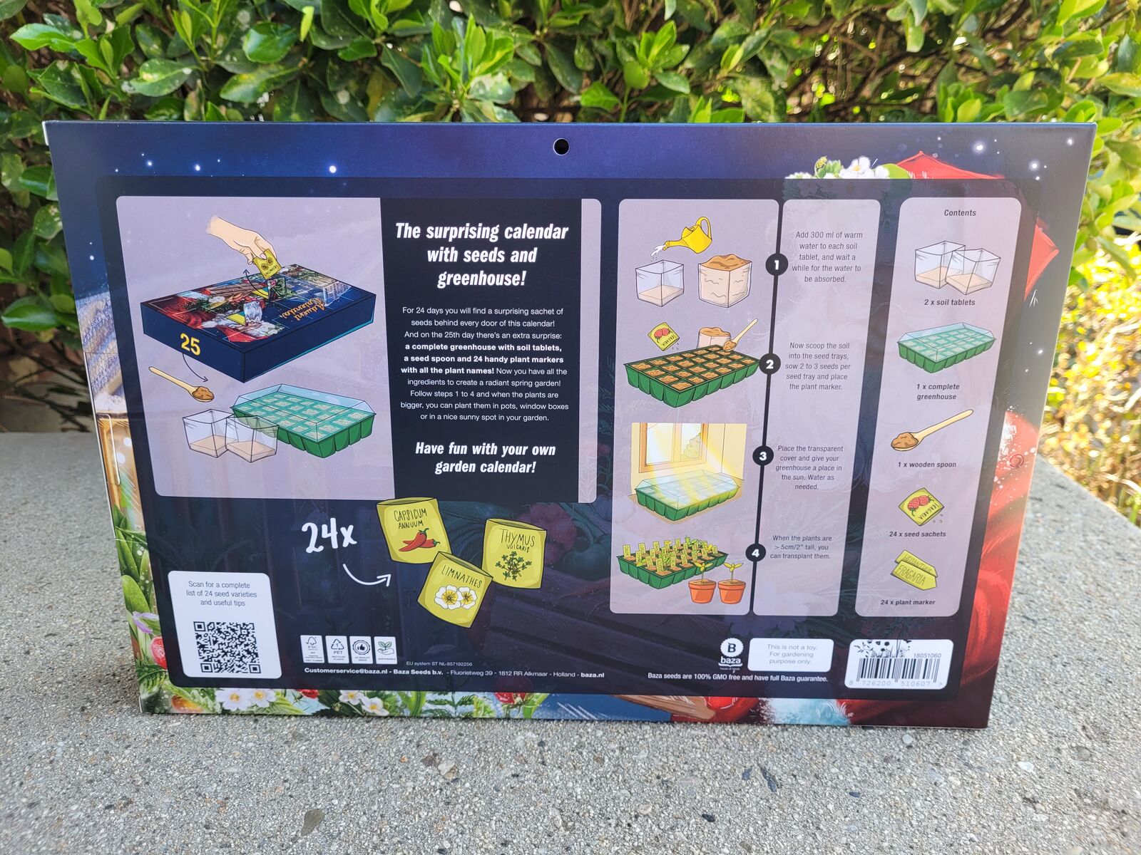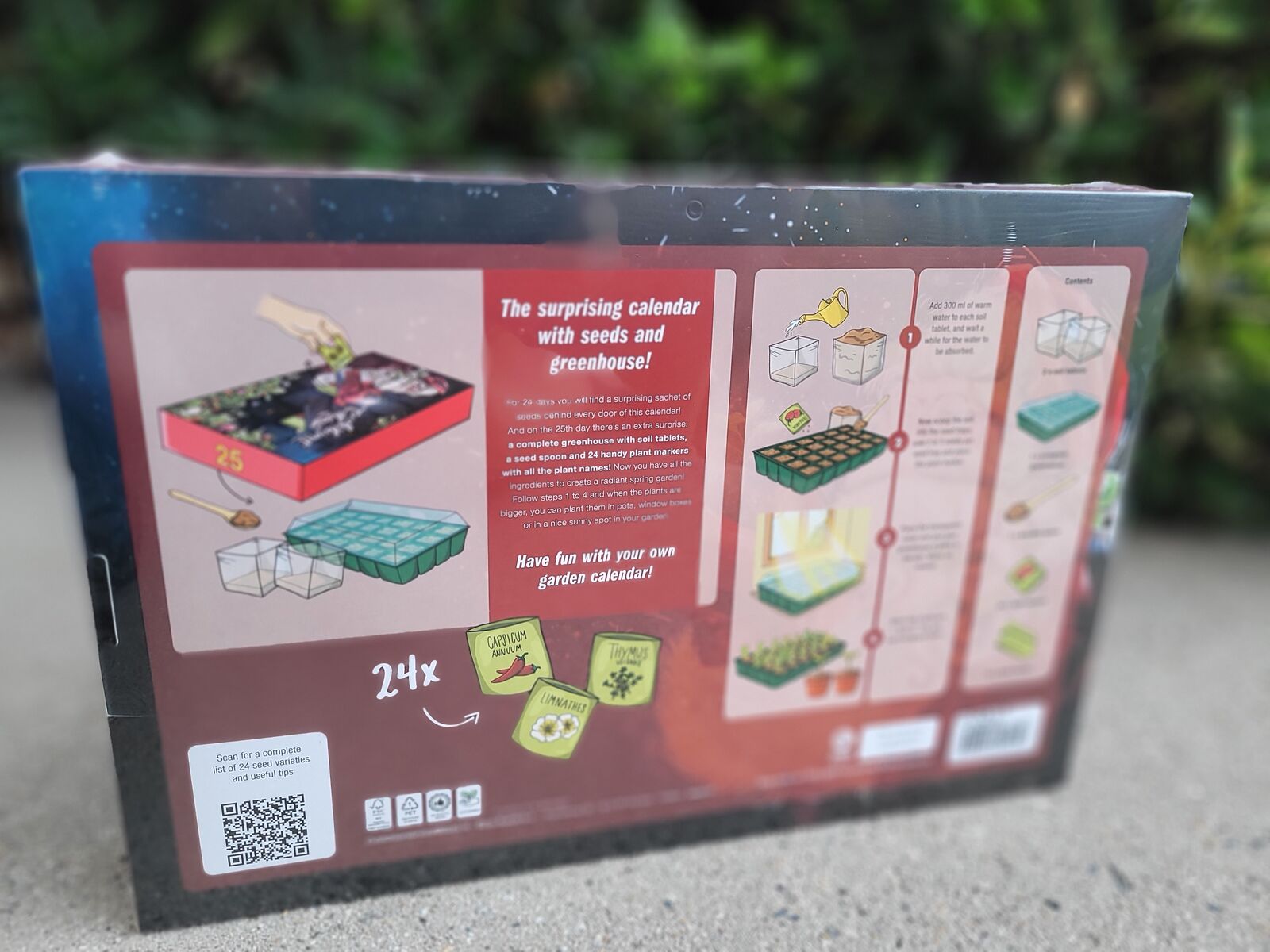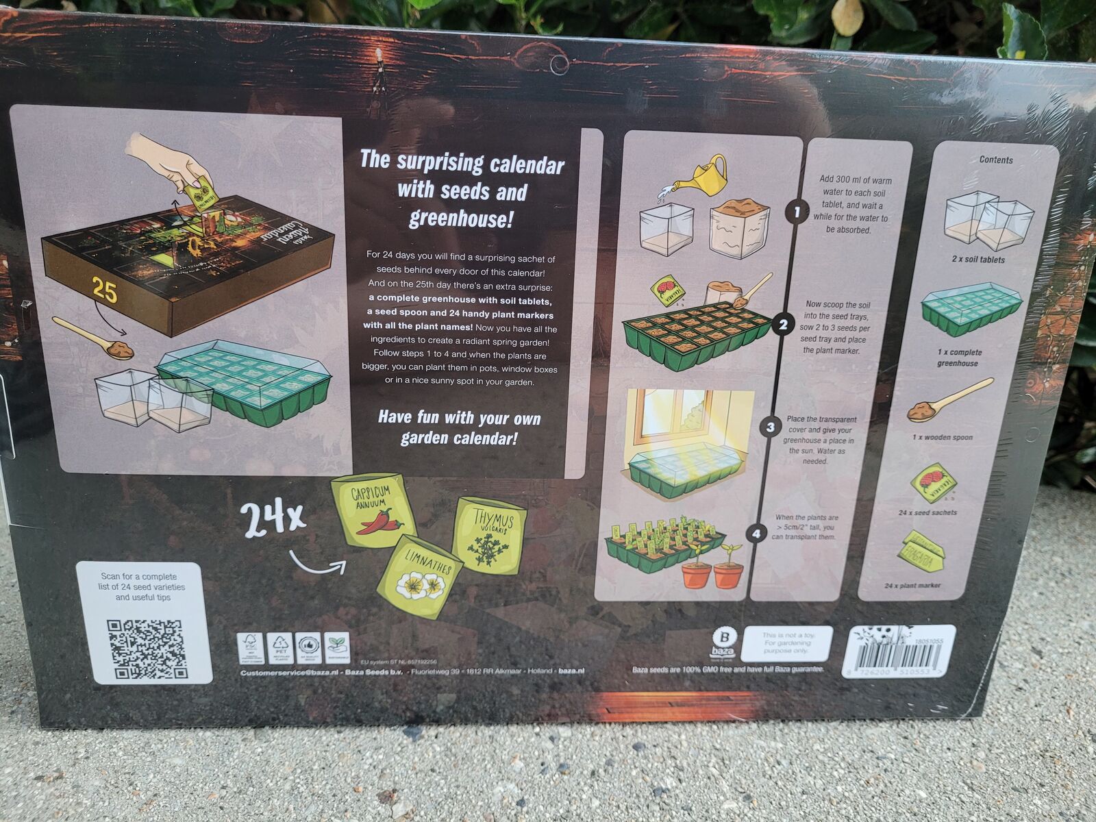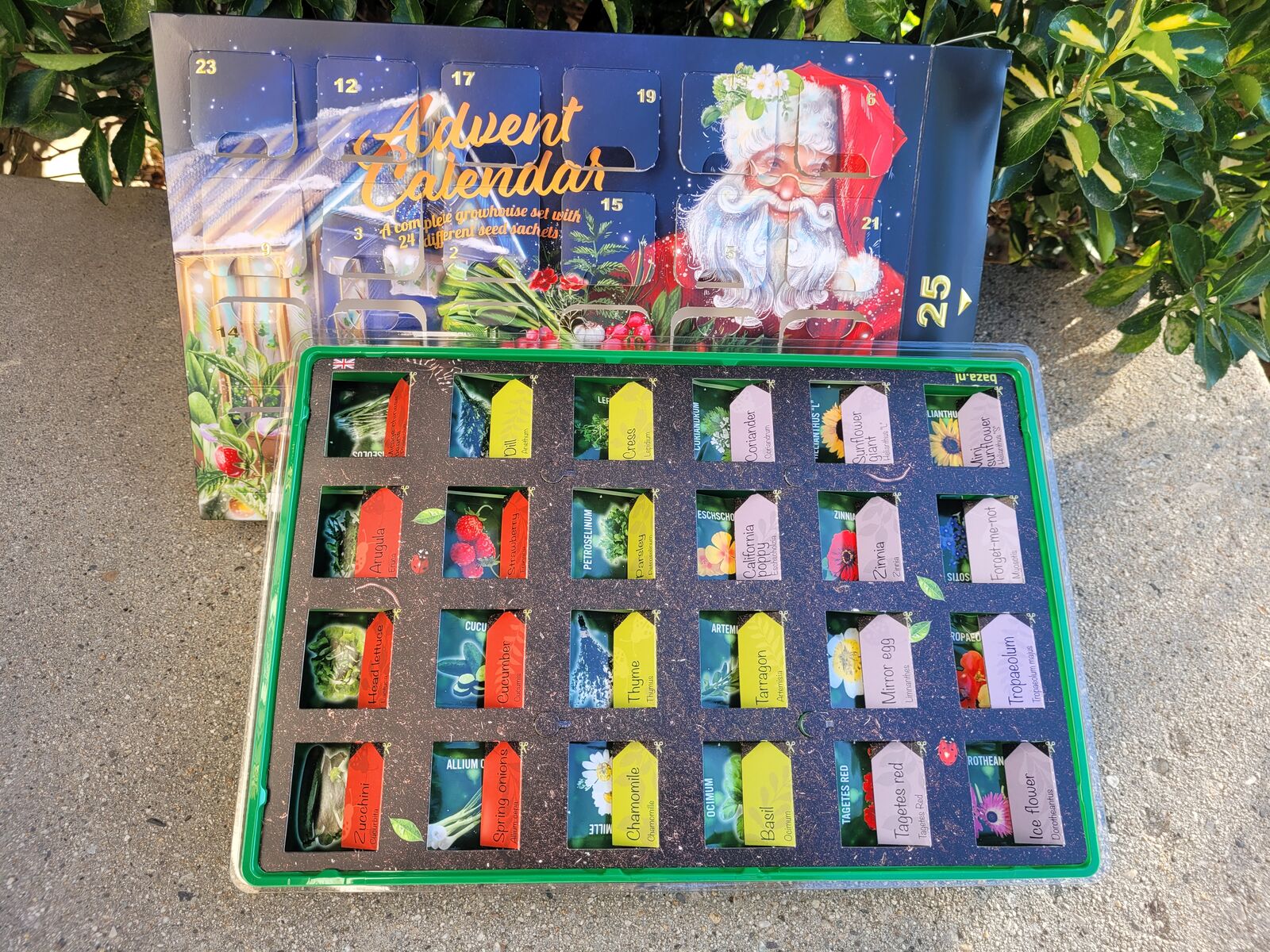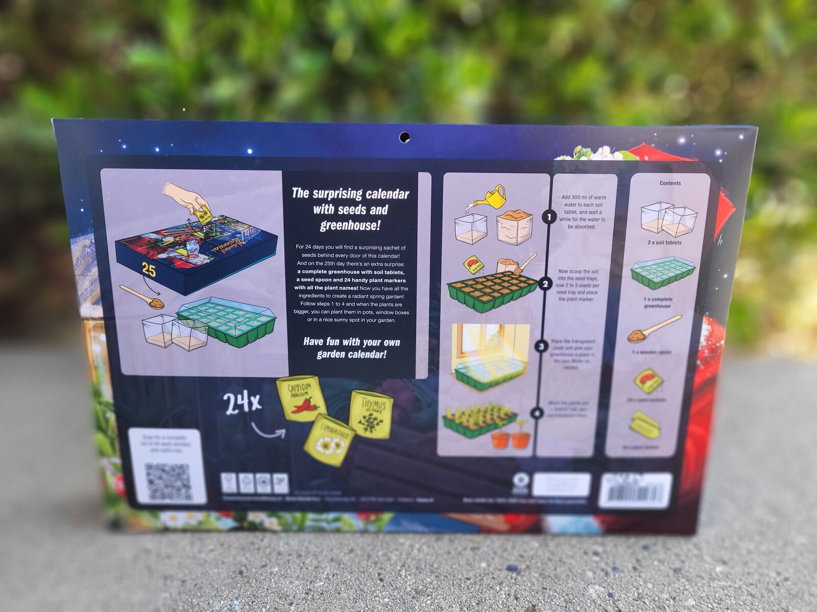 High-quality greenhouse: on the 25th Day a two-piece mini greenhouse with 24 growing compartments and plant stakes for optimal germination.