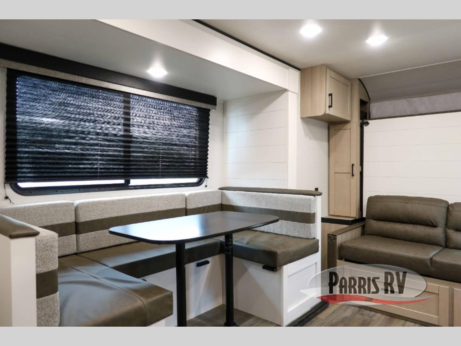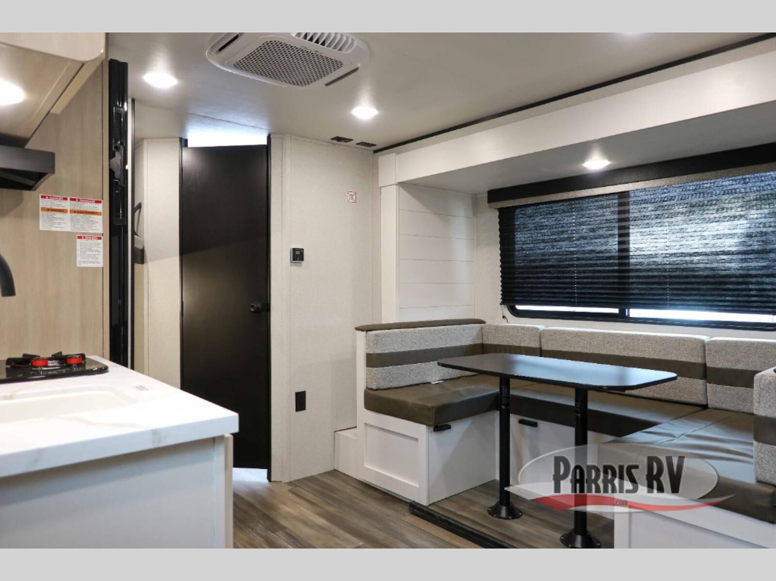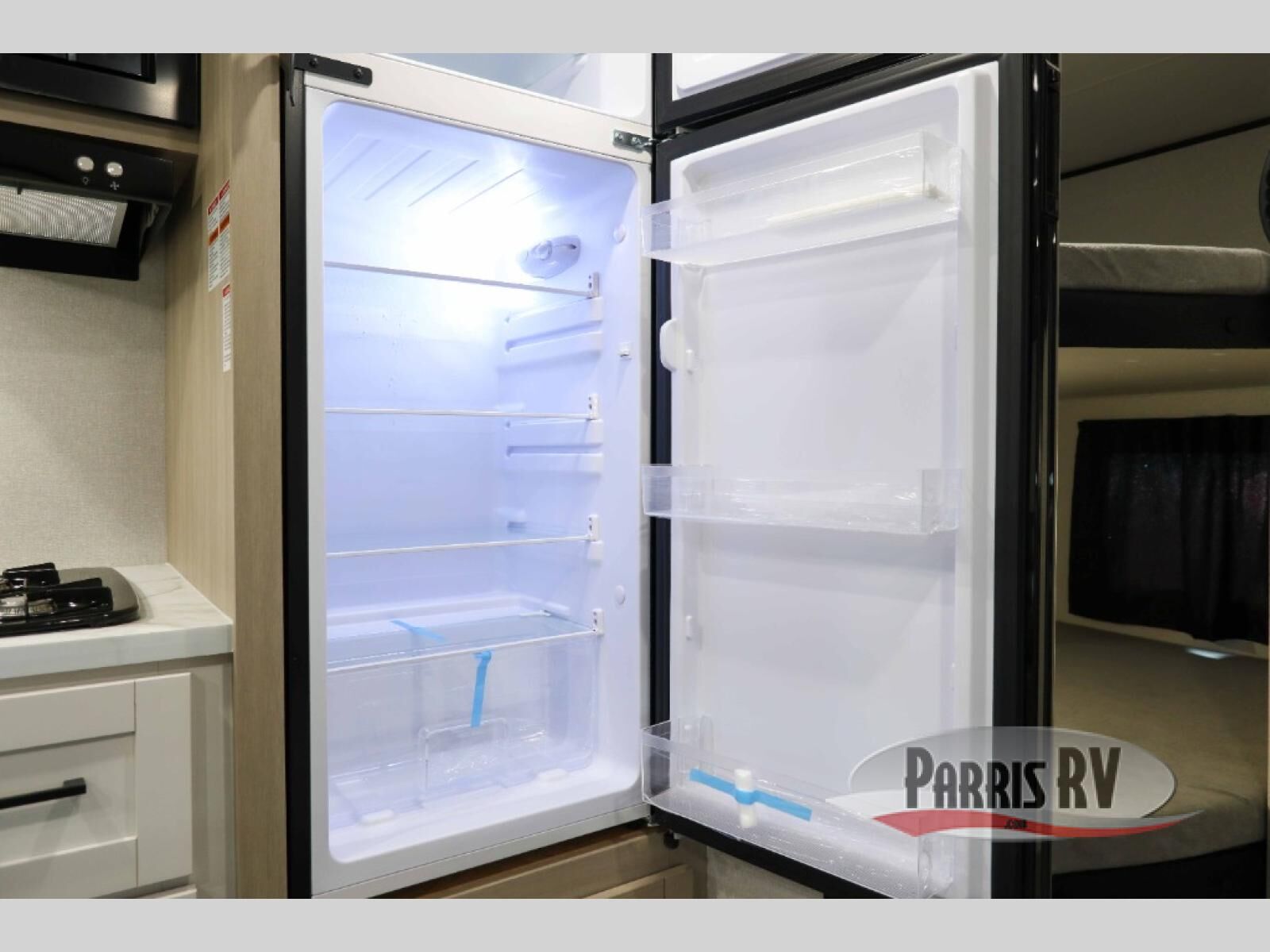 This travel trailer features compact sleeping spaces thanks to the double-size bunk beds in the rear corner, and the private full bath is right next to the bunks for easy nighttime use! You'll have the front Murphy bed all to yourselves, and in the morning, you can fold it away to sit on the jack-knife sofa. A cooktop and microwave oven will let you make meals each day, and there is a 12V refrigerator to keep your cold items fresh. Outside, you'll enjoy the 13' power awning for added shade, and there are two exterior storage compartments to keep fishing poles, hiking gear and more!