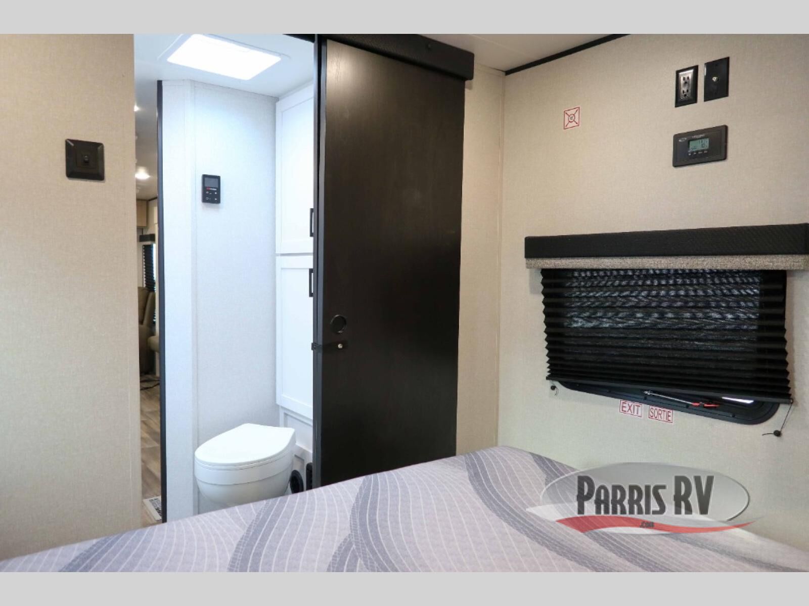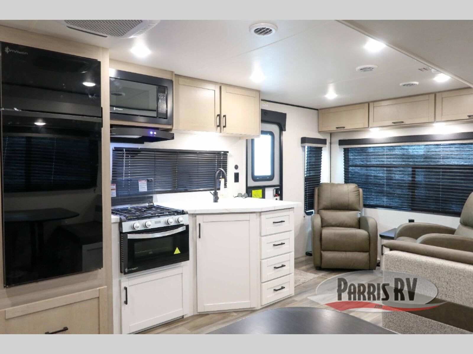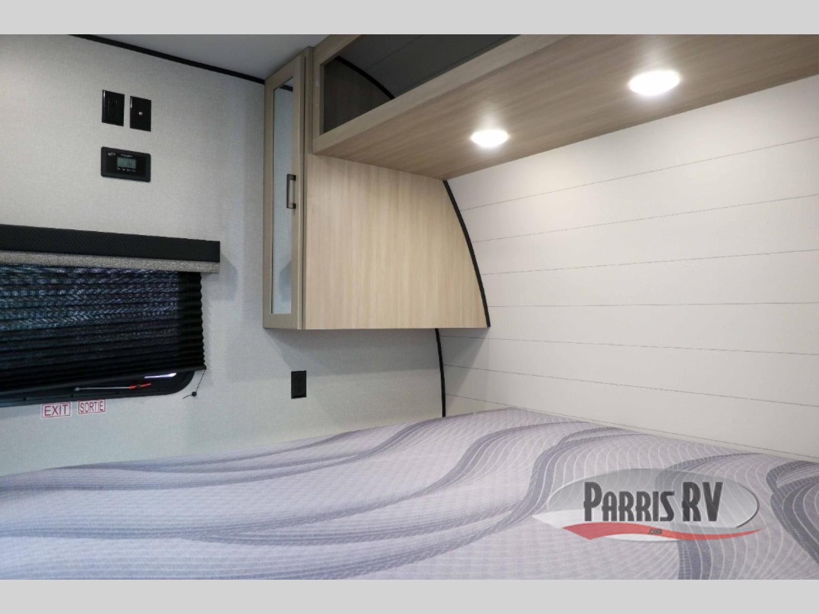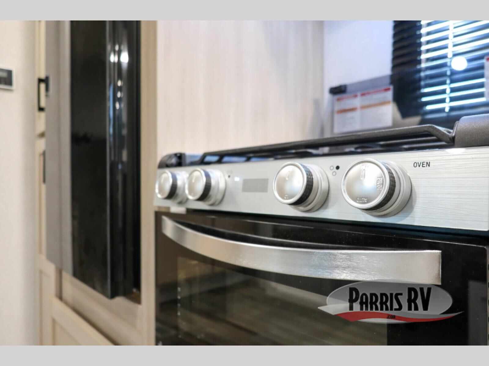 With dual entry doors in this unit, you can enter in through the front master bedroom or the rear living room! The dual lounge chairs in the back will let you relax with a book and your coffee, and there is a large slide out with a jack-knife sofa and booth dinette for additional seating spaces. The chef of your group can make meals on the three-burner cooktop or in the microwave oven, and there is a pantry for dry goods or snacks. The walk-thru bath is easily accessible for everyone to use, and the front master bedroom with a 60" x 74" RV queen bed will make you feel right at home!