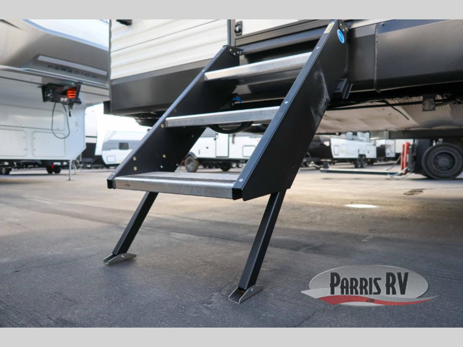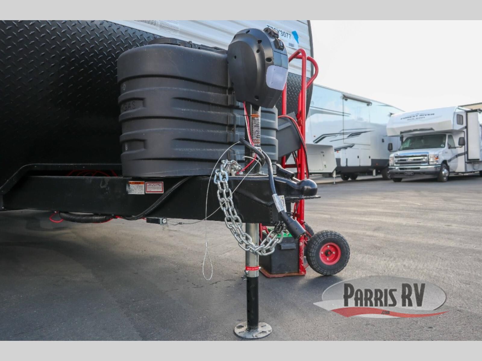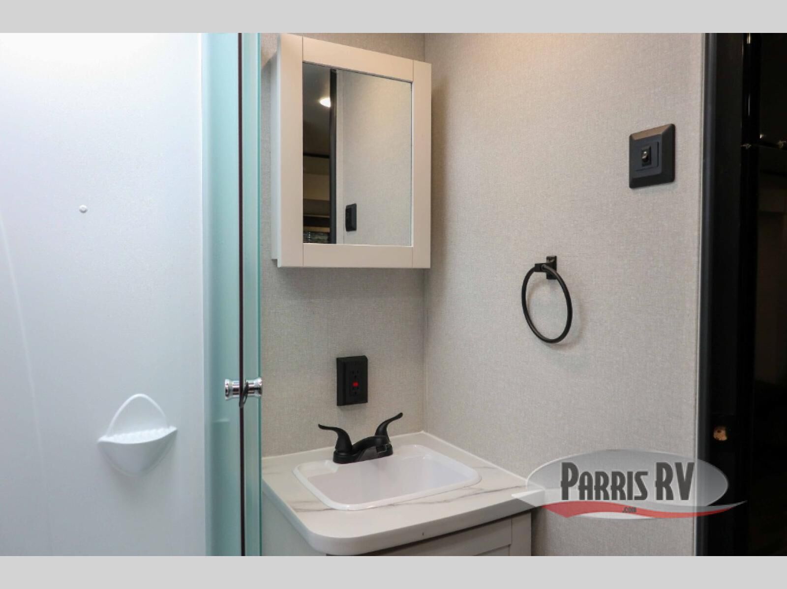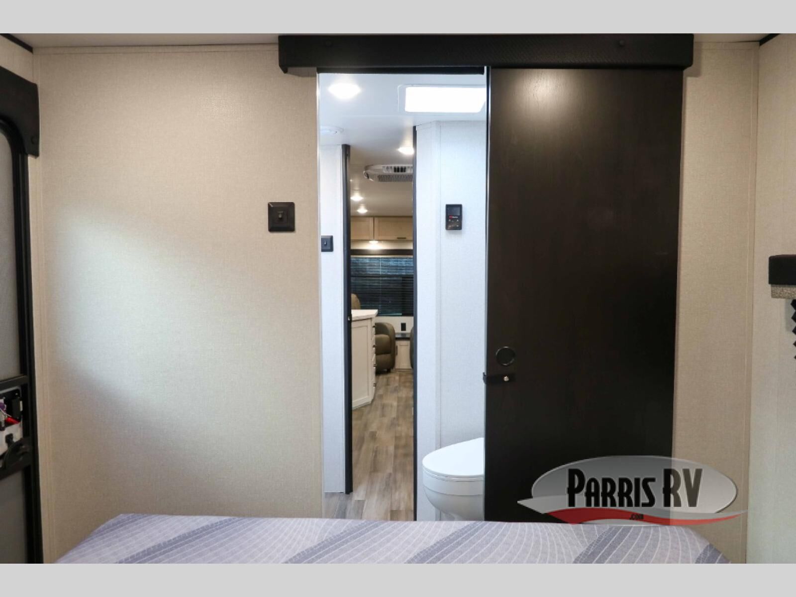 With dual entry doors in this unit, you can enter in through the front master bedroom or the rear living room! The dual lounge chairs in the back will let you relax with a book and your coffee, and there is a large slide out with a jack-knife sofa and booth dinette for additional seating spaces. The chef of your group can make meals on the three-burner cooktop or in the microwave oven, and there is a pantry for dry goods or snacks. The walk-thru bath is easily accessible for everyone to use, and the front master bedroom with a 60" x 74" RV queen bed will make you feel right at home!