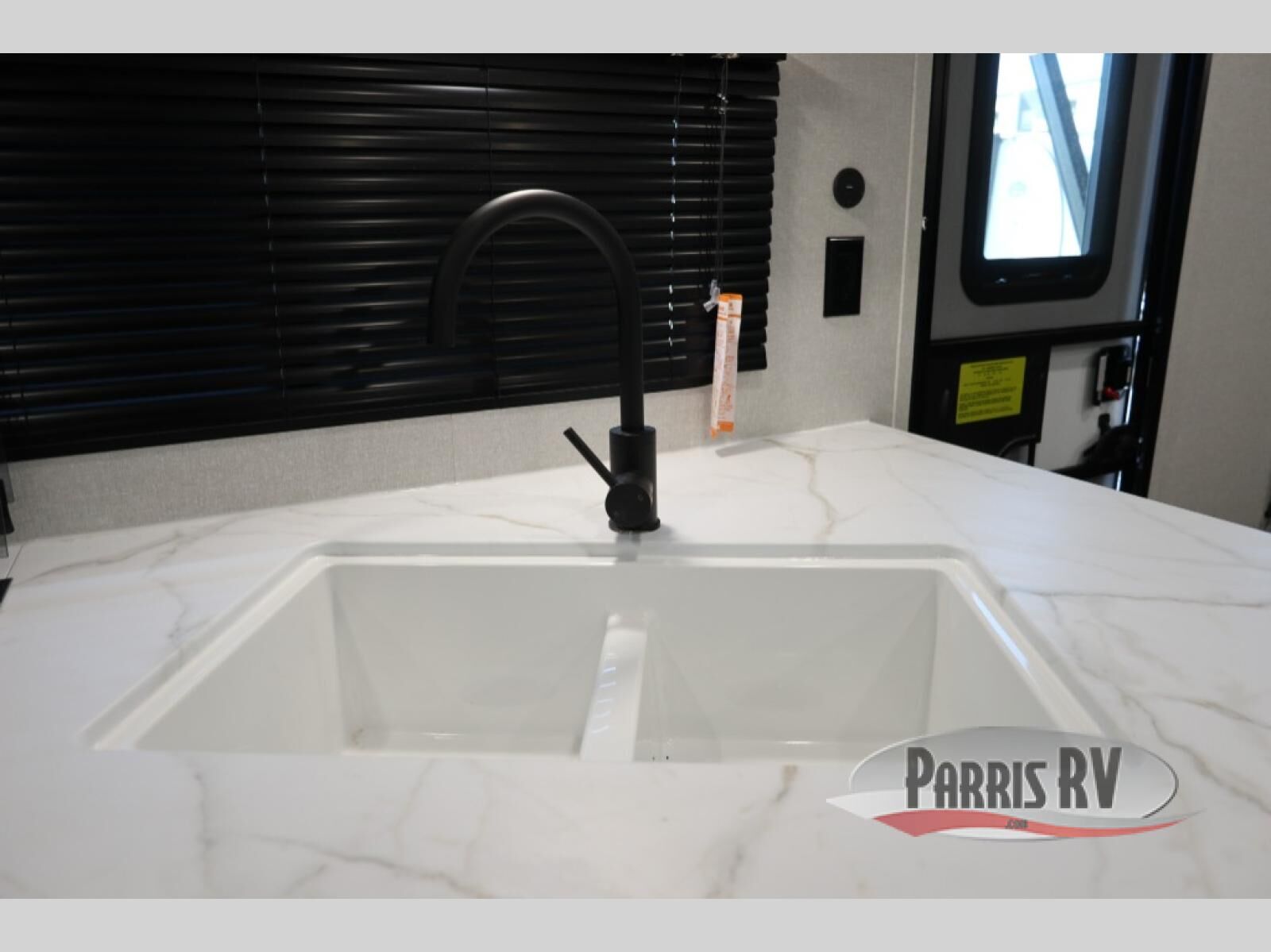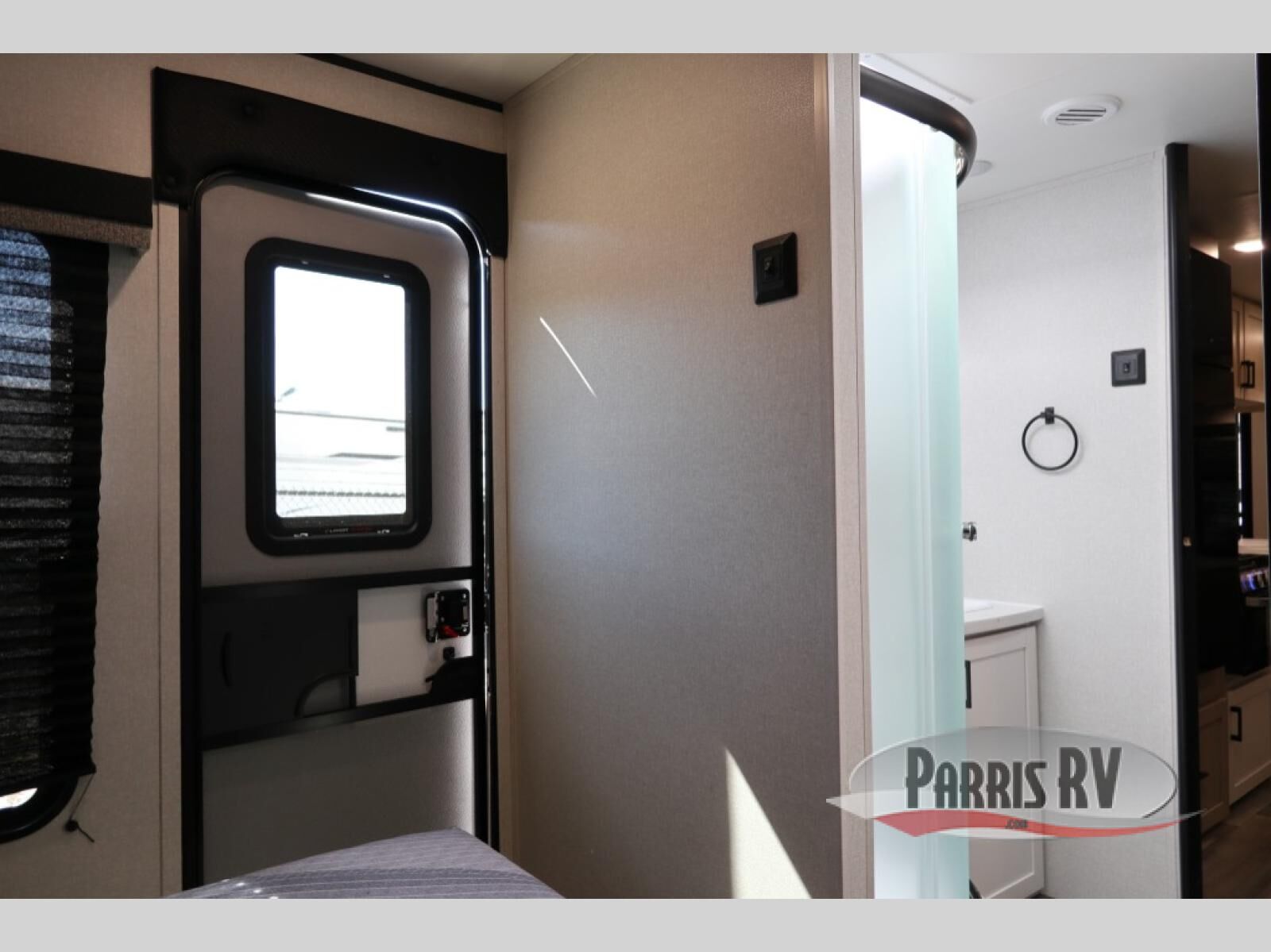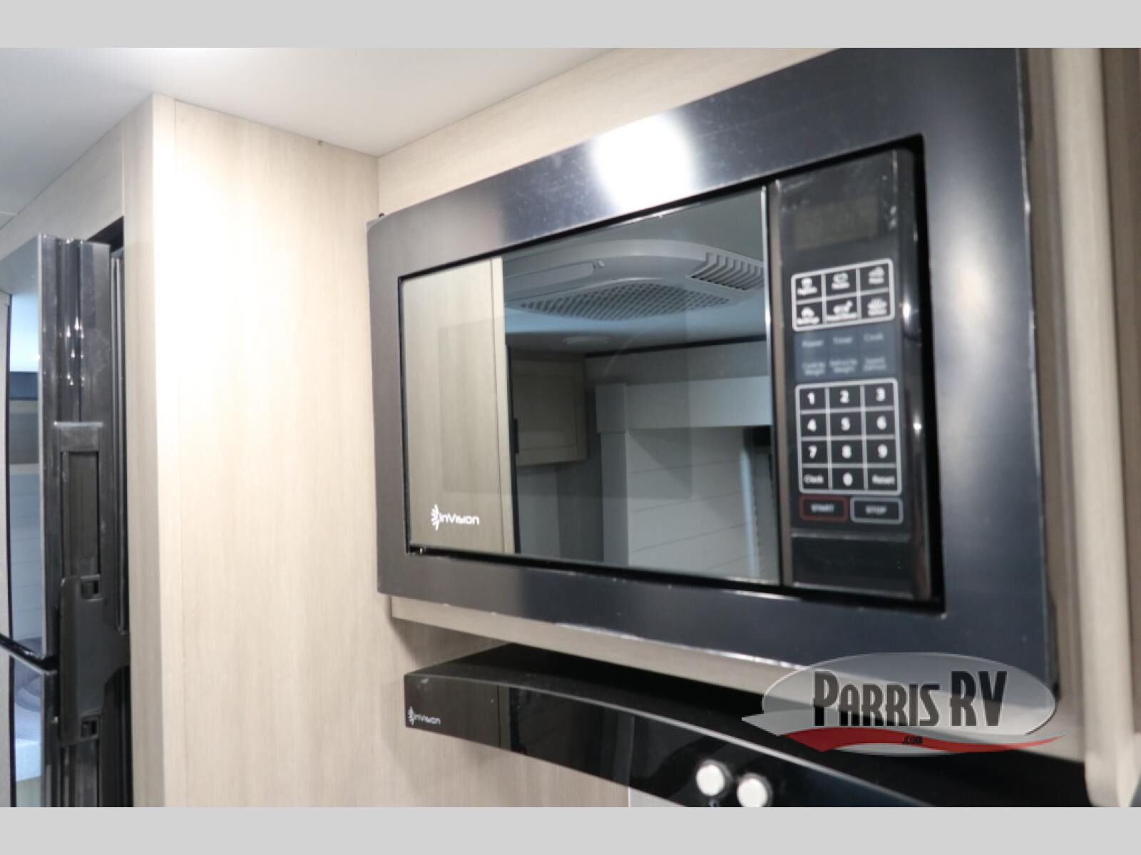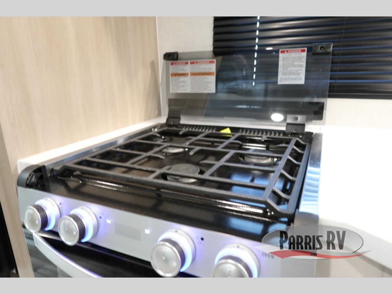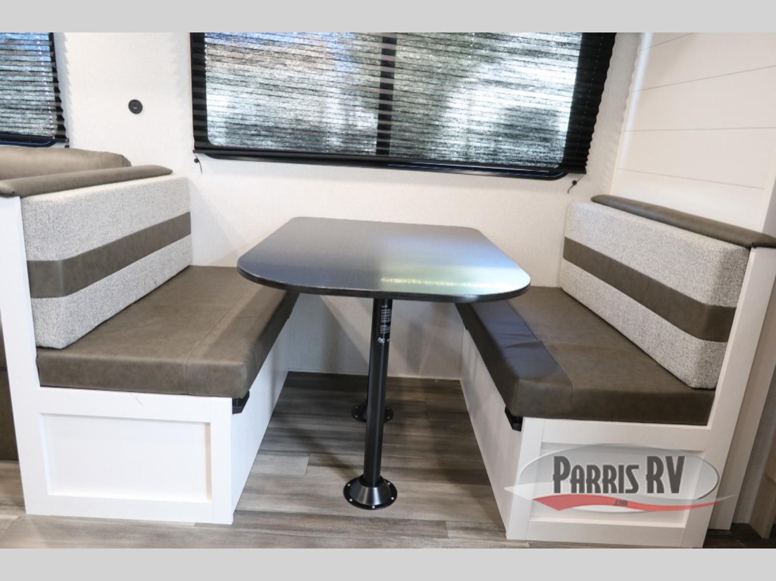 With dual entry doors in this unit, you can enter in through the front master bedroom or the rear living room! The dual lounge chairs in the back will let you relax with a book and your coffee, and there is a large slide out with a jack-knife sofa and booth dinette for additional seating spaces. The chef of your group can make meals on the three-burner cooktop or in the microwave oven, and there is a pantry for dry goods or snacks. The walk-thru bath is easily accessible for everyone to use, and the front master bedroom with a 60" x 74" RV queen bed will make you feel right at home!