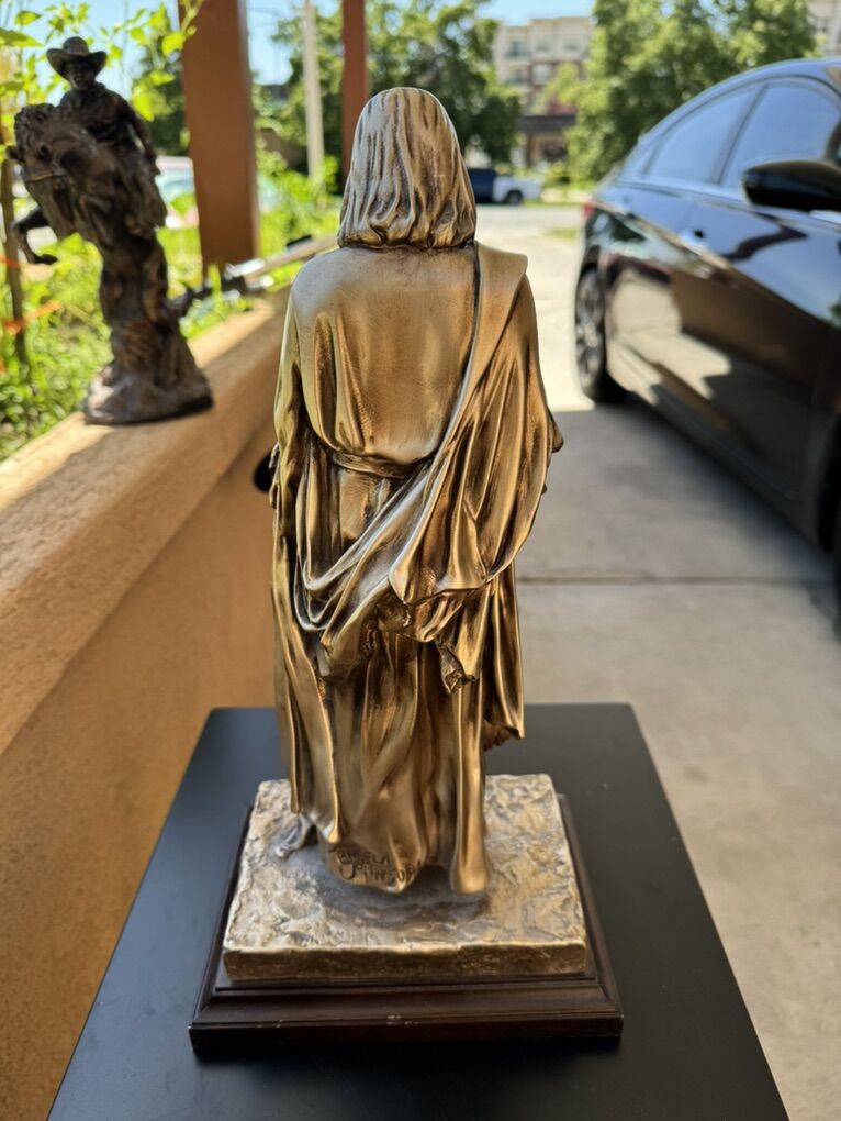 Ángela Johnson cast bronze sculpture of Jesus 14”.5 Tall in great condition, great shape Angela Johnson signed Bronze Statue Bronze Sculpture Christ - Come Unto Me - Stunning Pre owned in excellent condition no flaws at all Angela Johnson is a sculptor of religious themes and a member of The Church of Jesus Christ of Latter-day Saints. Angela only began sculpting twelve years ago, but her series of sculptures of Christ are noted as remarkable, moving and masterful. They have been on display at the Newport Temple Open house, the Mesa Temple Visitor Center, and the LDS Museum of Church History and Art. $200 The price is firm I don’t accept offers Accept only in cash Hablo Español