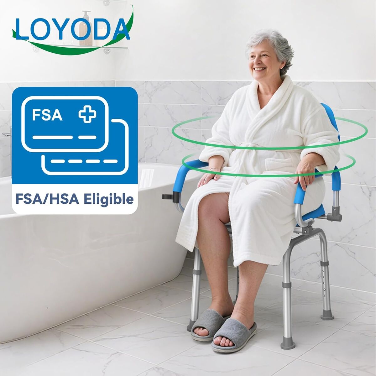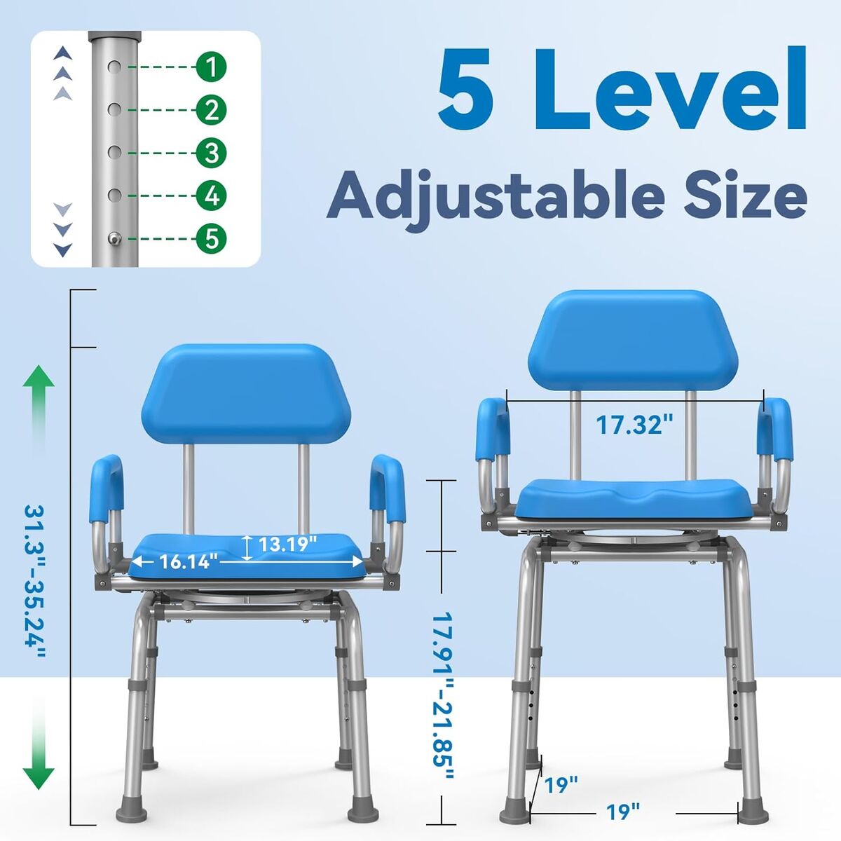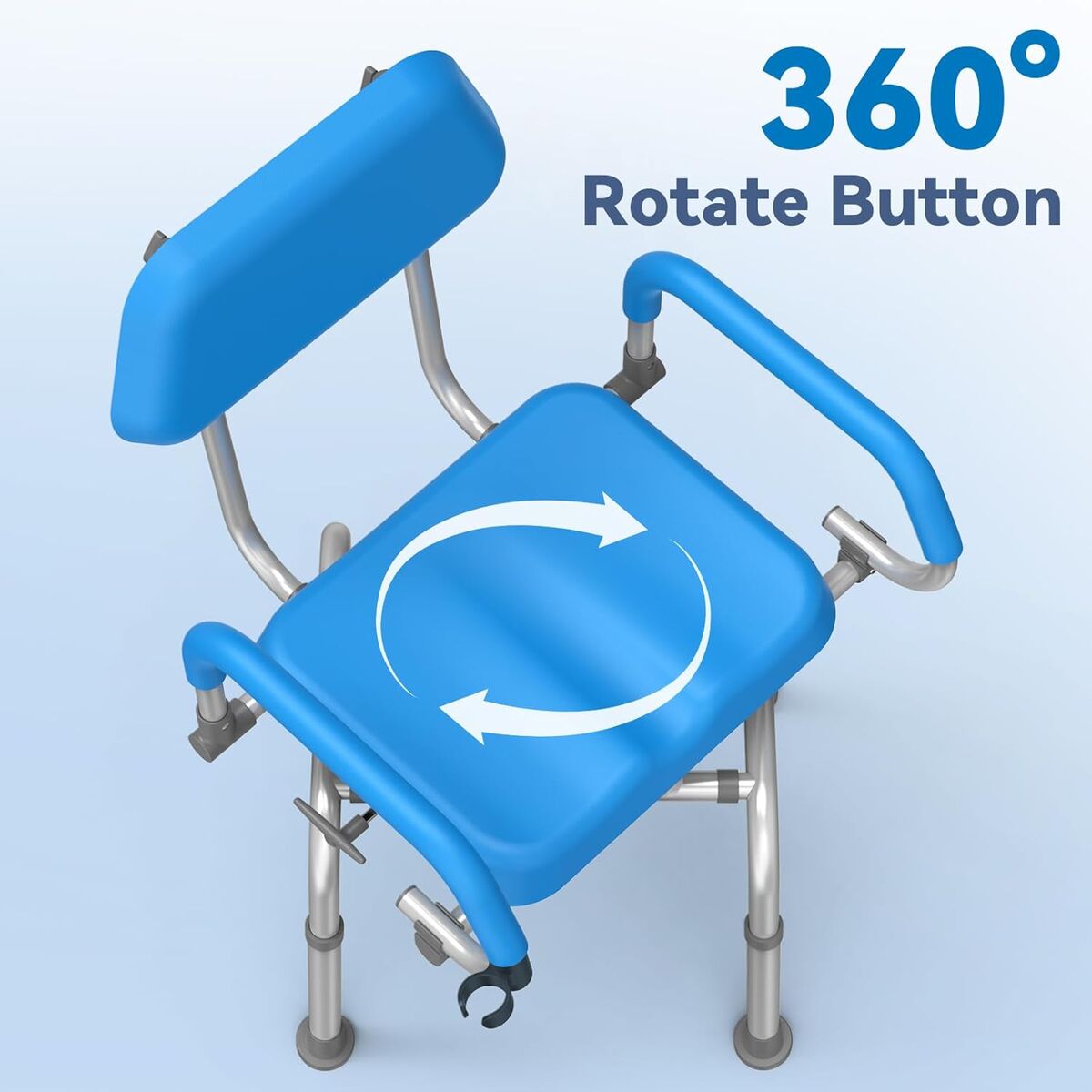 NEW IN BOX! Swivel Shower Chair with Arms and Back, Padded Shower Bench with Pivoting Arms, Height Adjustable Shower Chair for Elderly and Disabled, 400 lbs
