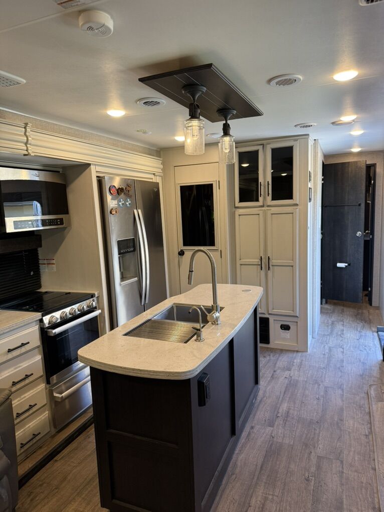 Immaculate and fully loaded with all the bells and whistles. Has the upgraded King Size bed, backup camera, 2 TVs, fireplace, inverter, extra solar panel, and many other upgrades. Will include the Equalizer hitch setup for the right price.
