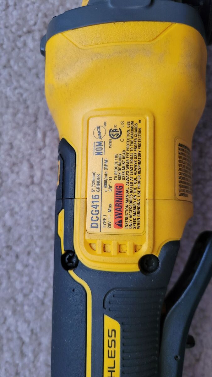 DeWalt DCG416B 20V MAX XR 4.5"-5" paddle switch Angle Grinder with FLEXVOLT ADVANTAGE. Compatible with all DeWalt 20V and FLEXVOLT batteries. In great conditions. Used once for a project and no longer needed.