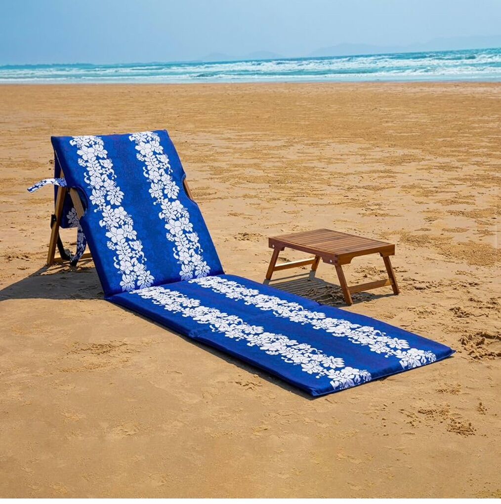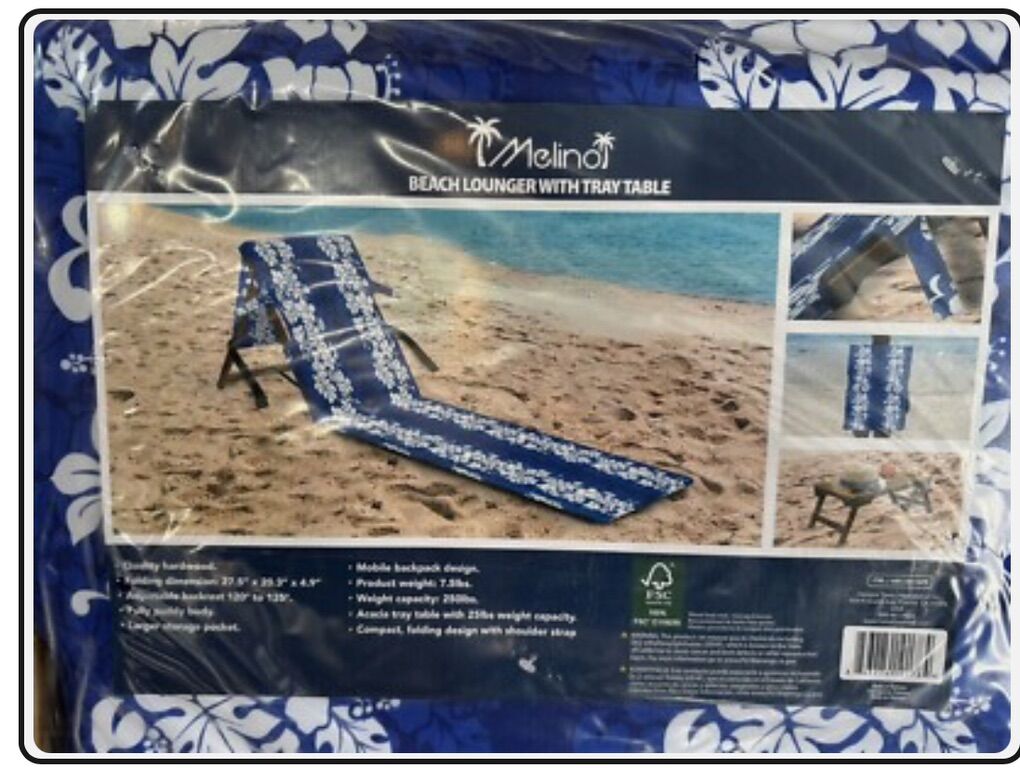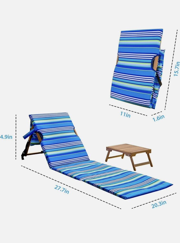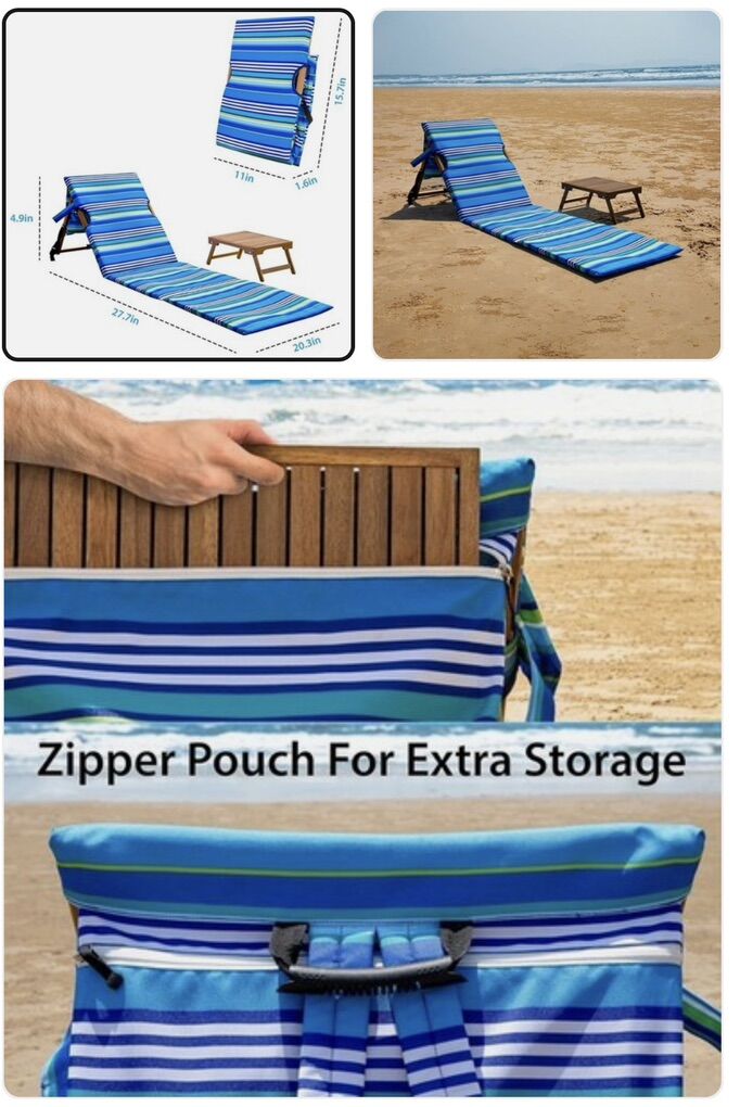 PayPalMelino Folding Beach Lounger with Tray Table Padded Wood Frame Lightweight