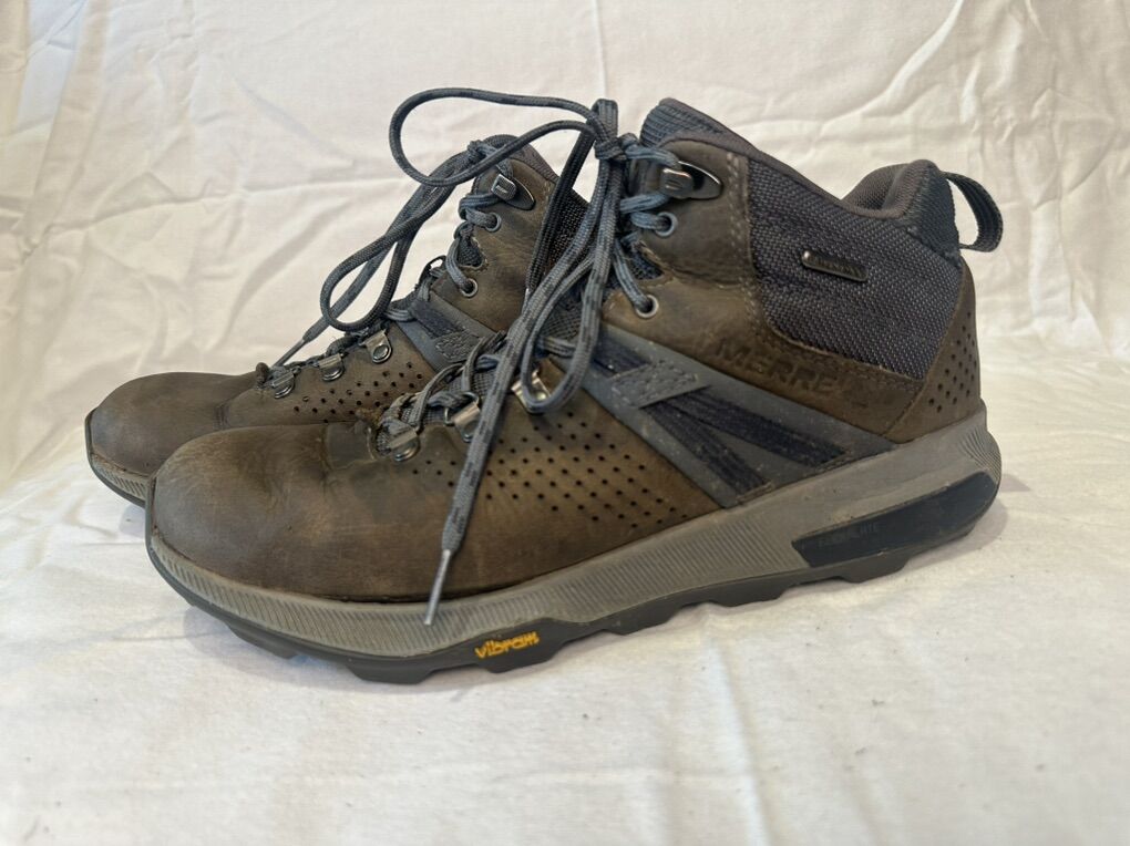 Merrell men’s size 9 brown leather with gray textile waterproof mid hiking boots. These are in good condition, see photos for detail details. I take cash or Venmo, but cash is preferred. Text is best. 801-201-4446. Check out my other ads for additional sizes and styles.