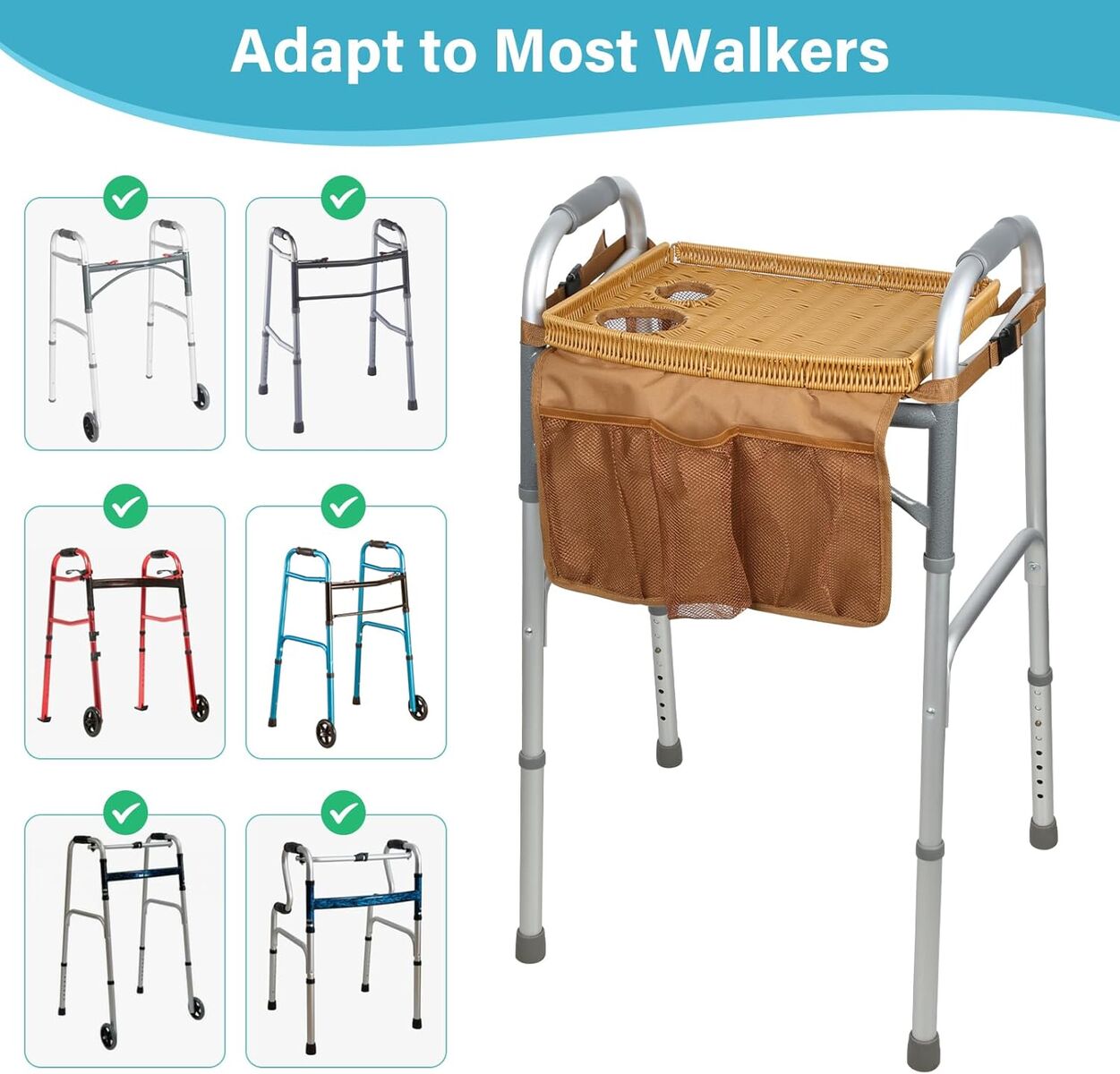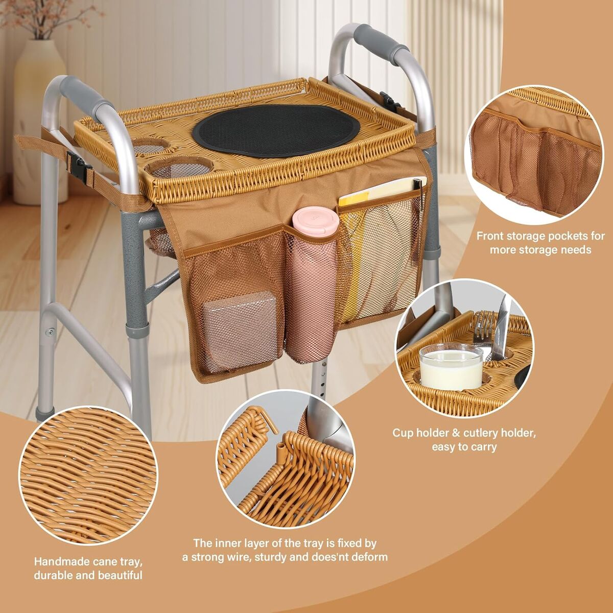 NEW IN BOX! Walker Tray for Folding Walker, Handmade Rattan Trays for Walkers for Seniors Detachable with Cup Holder,Walker Trays for Rolling Folding Walker,Walker Accessories for Elderly