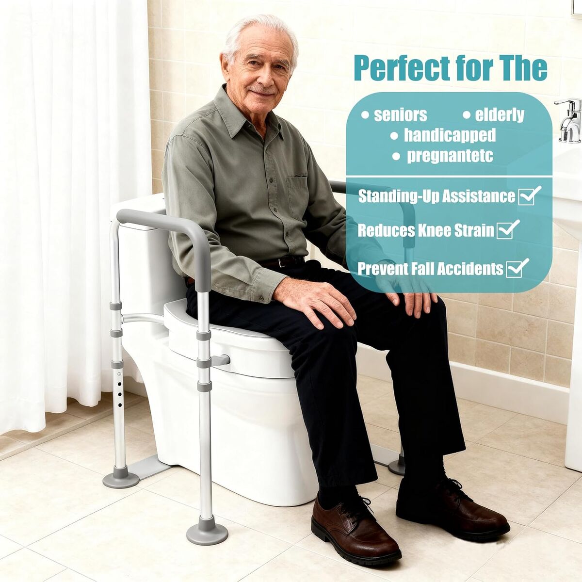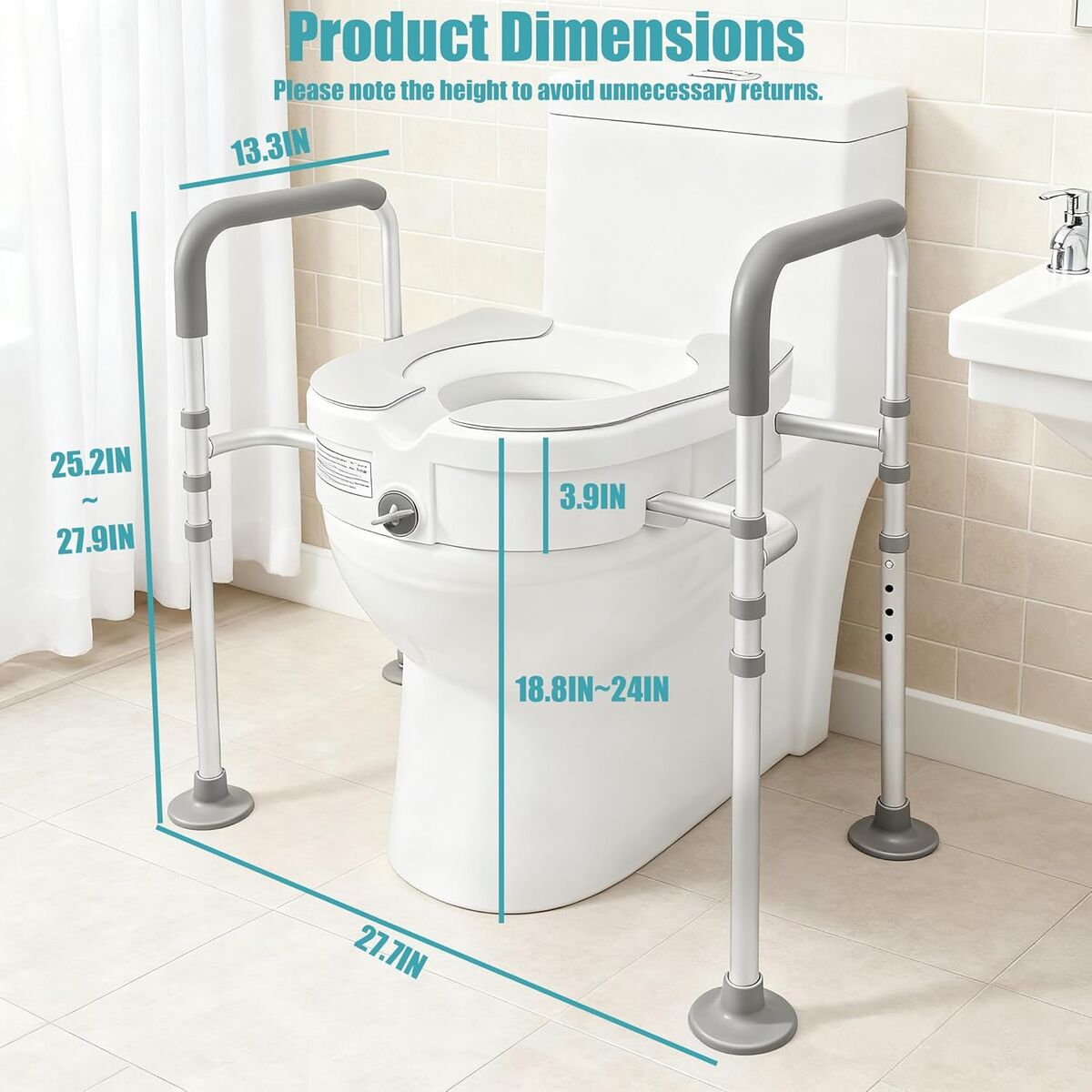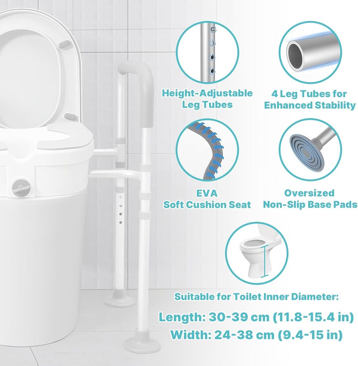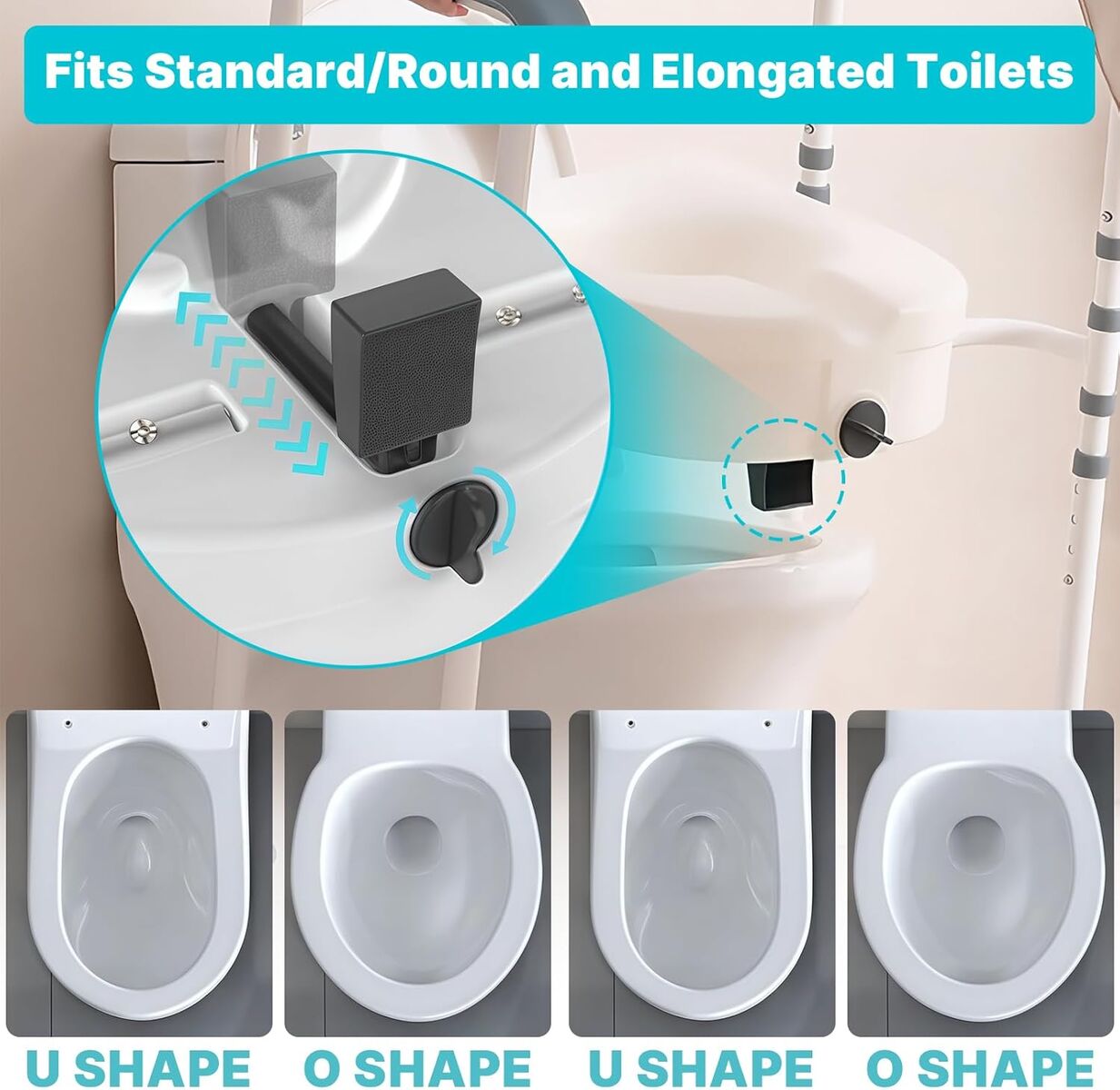 NEW IN BOX! Raised Toilet Seat with Handles, 4-Legged Fixing Toilet Seat Risers Toilet Risers with Handles for Seniors Using Thickened Aluminum Alloy Toilet Safety Rails Stronger Stability (Grey&White)