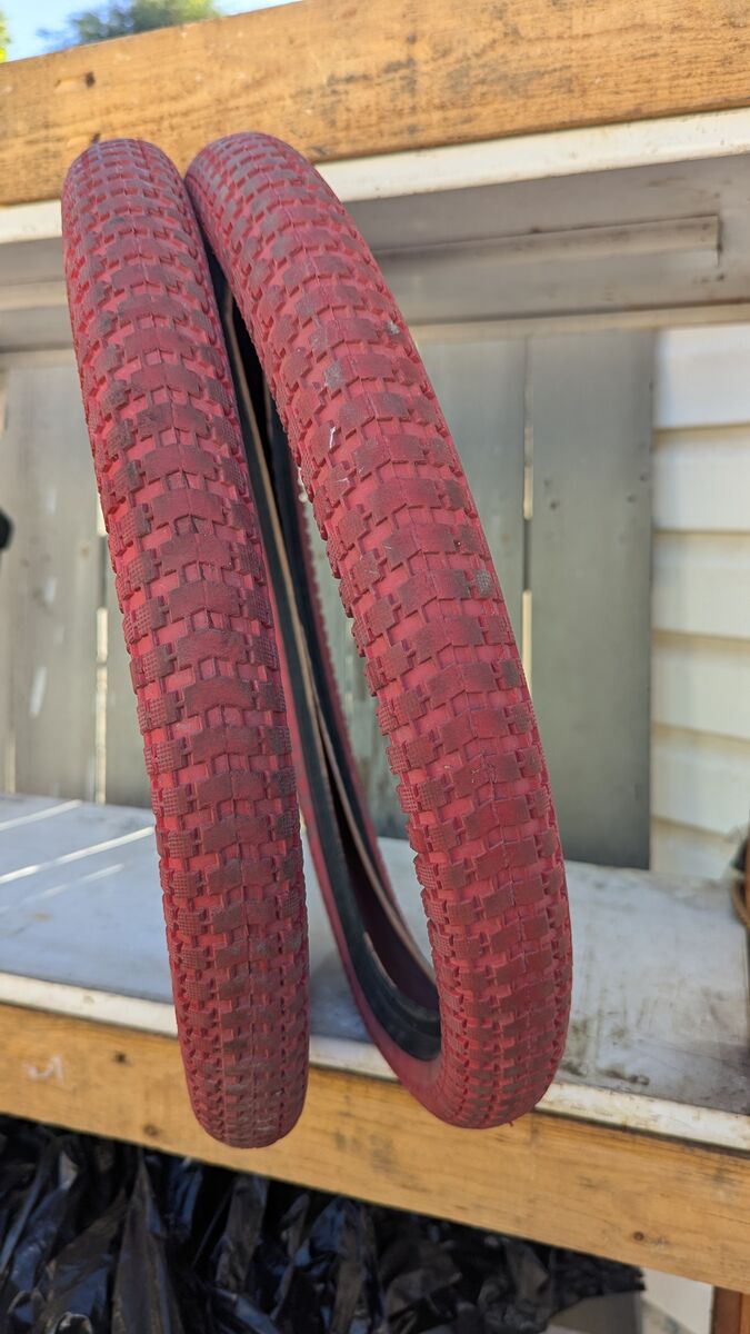 Two bike 20x2.30 red tires for sale asking $25 (801)301-0105