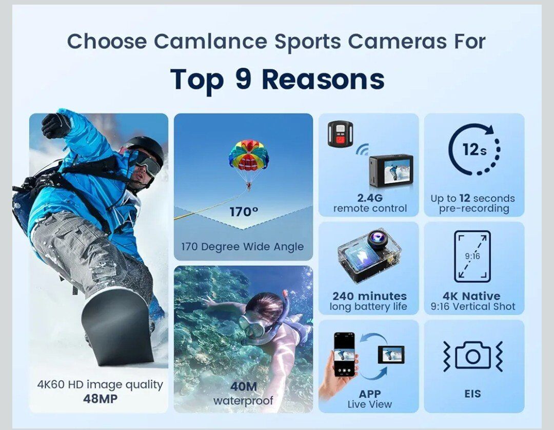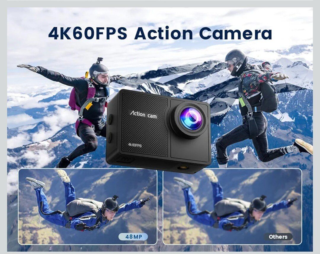 CAPTURE ADVENTURE IN 4K60FPS: Record stunning 4K60FPS video and 30MP photos with sharp precision. Shoot up to 60 frames per second of crystal-clear stills, providing 4 times the resolution of standard HD cameras. Plus, with the INCLUDED 64GB MEMORY CARD, you won't have to worry about storage limitations or missed moments. Perfect for high-action environments like snowboarding, biking, motocross, hiking, climbing, skateboarding, skydiving and ziplining