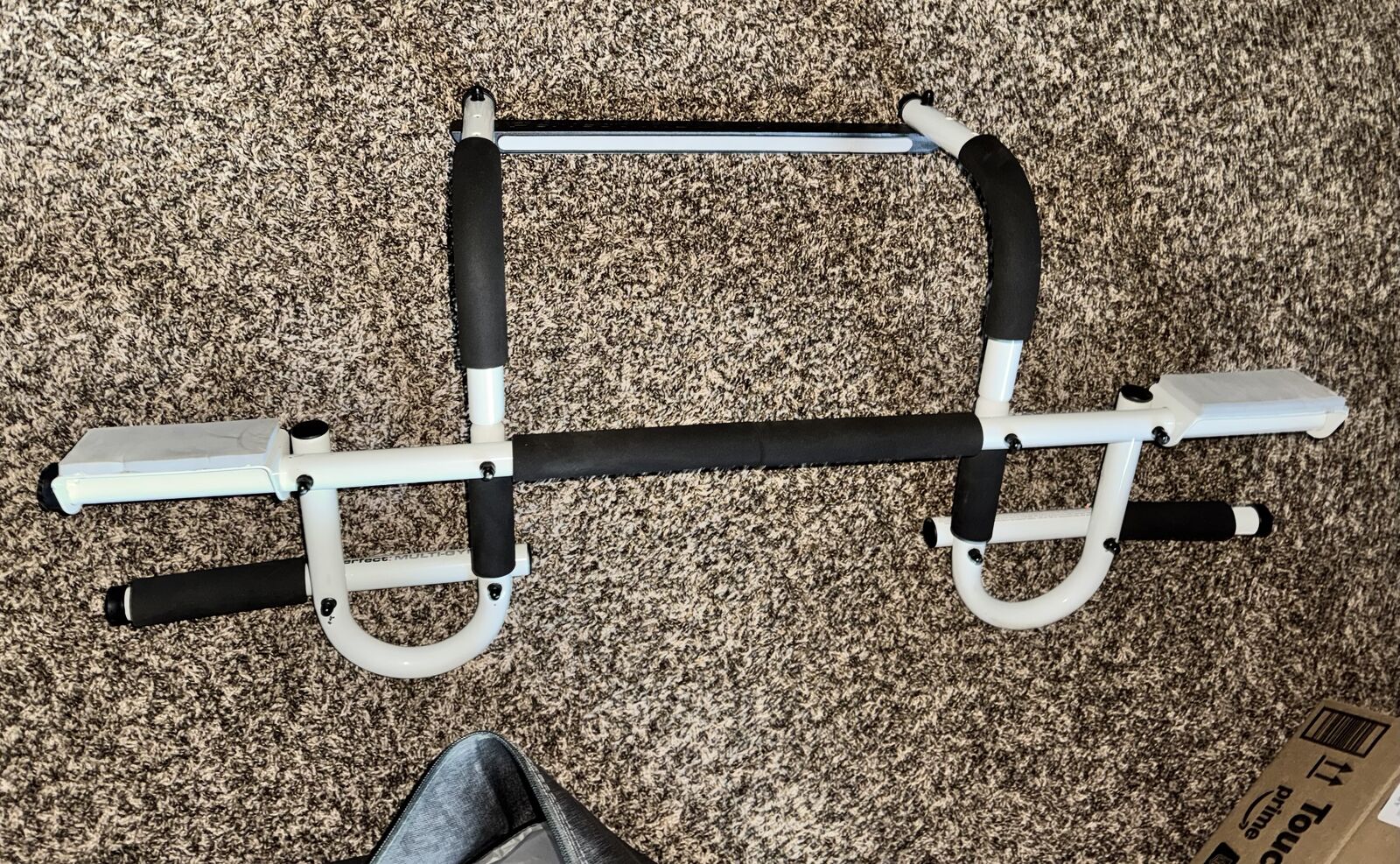 ApplePaySo sad this pull up bar attachment won't work on my new home - I love this thing! My favorite part is that it doesn't scratch up your door frame like other Ones I have owned. It is very durable and high quality. It is also thick and heavy and does not feel like you're going to break it when using it.