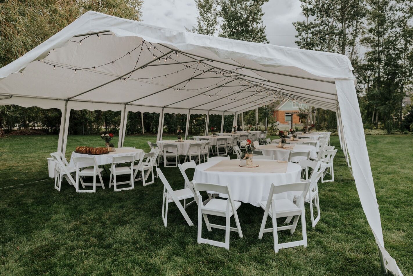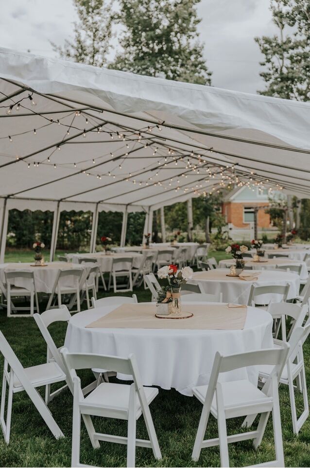 We also have cafe string lights available to light your event. $30/day for 4x50ft strands and includes stringing during tent setup.