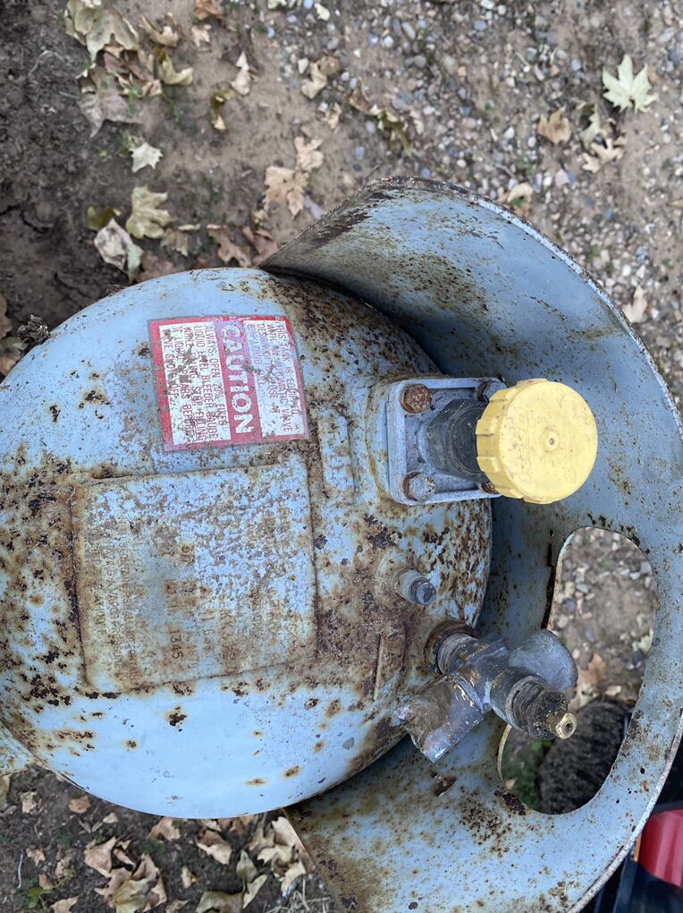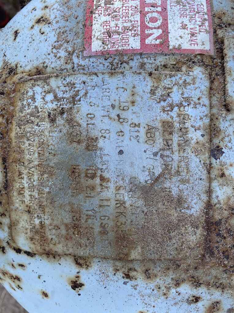 Venmo(For project not for storing propane) I have a 19.8 gallon propane tank that has the valve removed and been perged of propane. You can still smell a faint smell of propane. I definitely wouldn’t use this as a propane tank anymore. I was planning on converting it to a diesel tank. Super heavy condition rusty a little bit on the outside but extremely solid and clean inside make a barbecue grill the ideas are endless. Has legs for horizontal mounting.