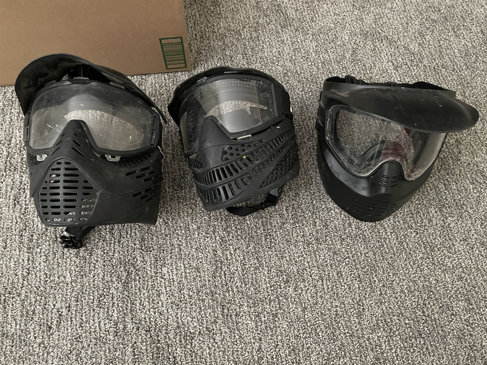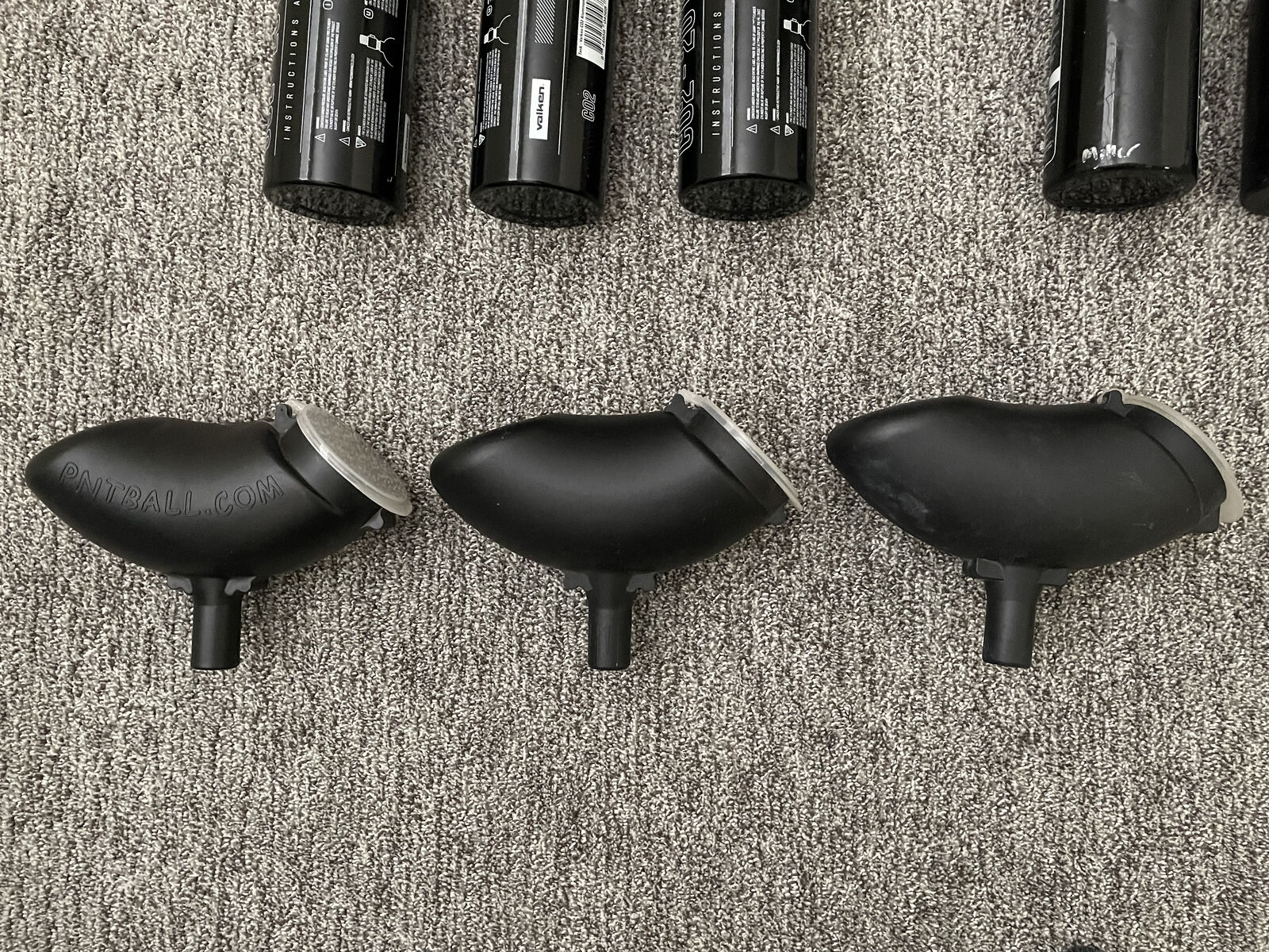 Venmo$75 OBO. 3 paintball markers, 3 masks, 3 hoppers, 6 gas tanks (may need to be recertified to fill again.). We rarely used them over the last few years. They worked when we last used them. Will need new connectors to attach the hoppers to the markers.