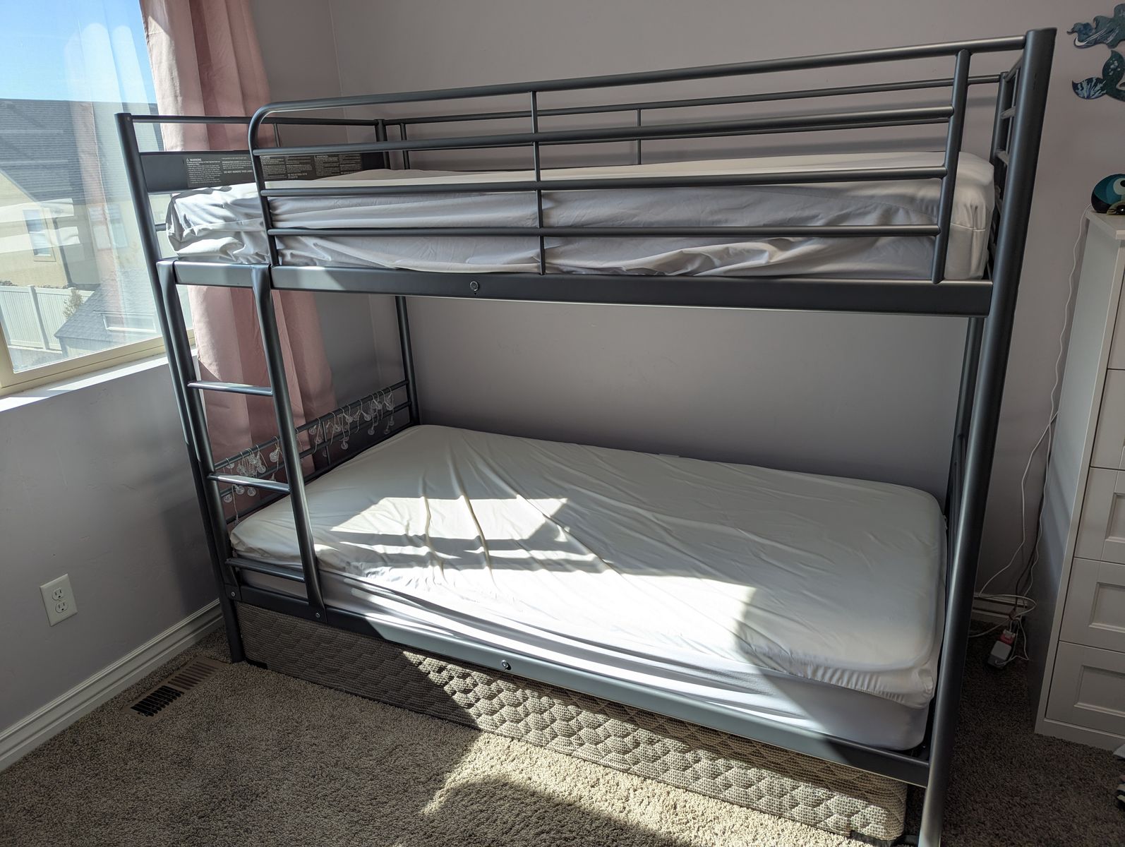 VenmoThis is an ikea bed. Color is grey. Smoke and pet free home.