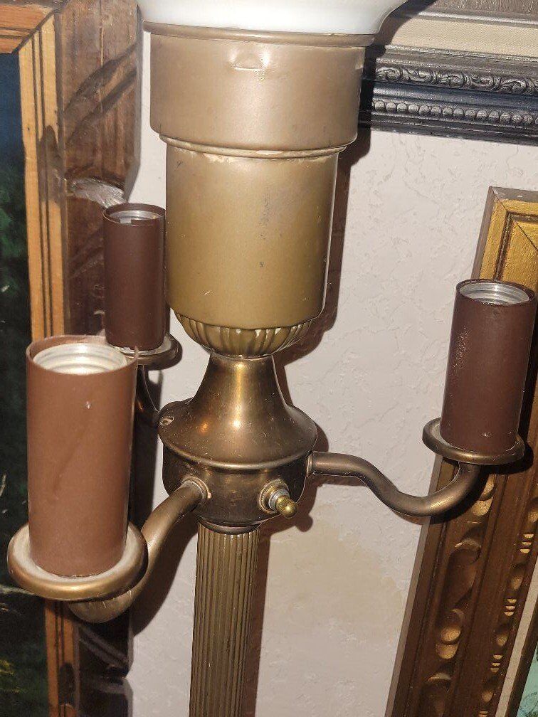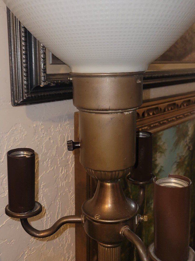Venmo62 inches tall vintage, uses 3 regular house sized bulbs, center uses a bigger screw in bulb, 4 bulbs total, candle style, its fully functional, just no bulbs on hand, nice designs, separate button for 3 side lights and center light. text is best, cash or venmo in person only. asking $150.00