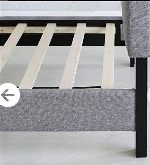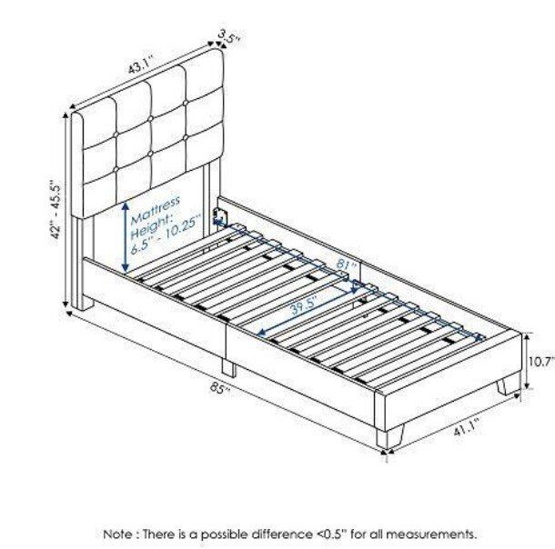 VenmoPolyester Simple stylish design, functional and suitable for bedroom Modern upholstery bed frame with button tufted design headboard Manufactured from composite wood and nylon fabric, CARB P2 and 100% polyester Dimensions: 85.24 in L x 43.11 in W x 45.5 in, 52.8 lb All components included: headboard, footboard, rails, slats, hardware Weight capacity: 500 lbs Sturdy on flat surface. Easy assembly NOTE: Parts are in the zipper department in the headboard