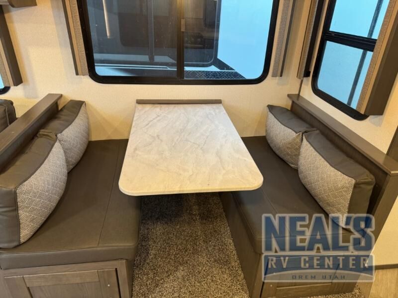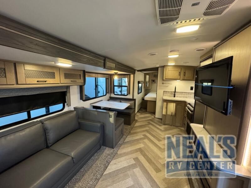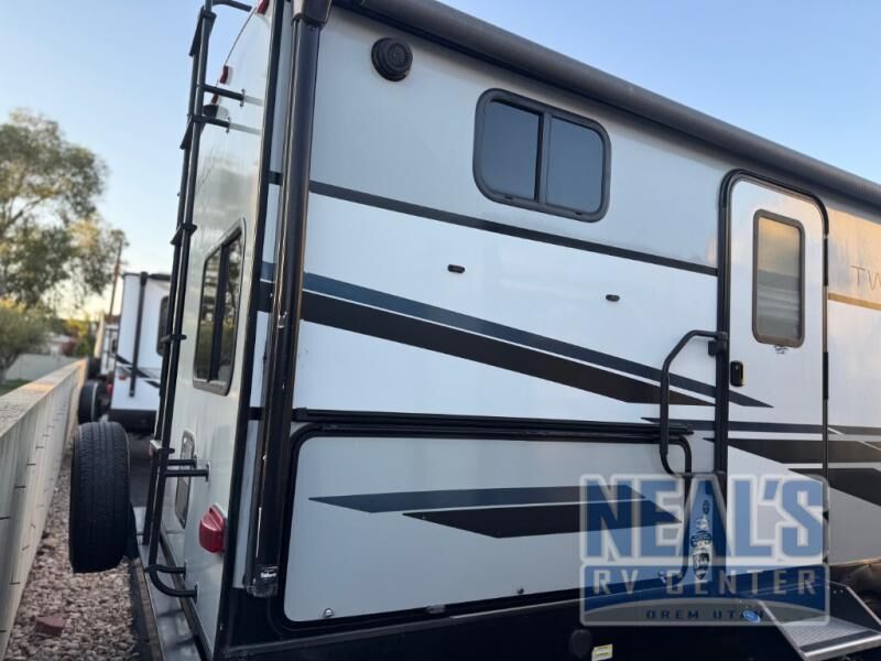 You will be quite impressed with this Twilight Signature travel trailer! There is an outdoor kitchen that will create the perfect place to host a summer barbecue, and the walk-in pantry is right next to the entry door so that you can quickly step inside to grab some extra ingredients for the meal you are preparing. On the interior, there is a large slide so that you can have extra gathering space in the evenings, and the tri-fold sofa and booth dinette can both be used as extra sleeping spaces if needed. The kitchen has everything the chef will need to prepare a hearty breakfast in the morning, and the full bathroom will keep everyone clean.