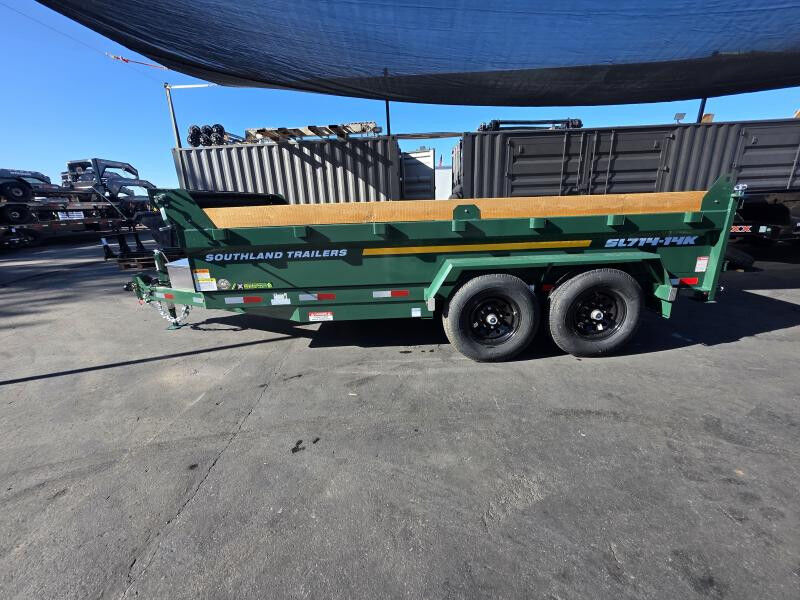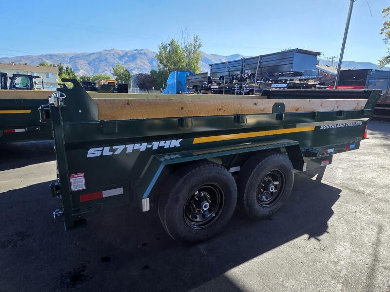 STOCK NUMBER: SL45028 MANUFACTURE: Southland Trailers MODEL: 7X14 270 Dump Trailer SPECIFICATIONS WIDTH: 7' LENGTH: 14' DOOR(S)/RAMP(S): Split Gate/Barn-Door WEIGHT: 3125 lb GVWR: 15432 lb PAYLOAD: 12307 lb AXLE(S): Tandem 7k Axles\