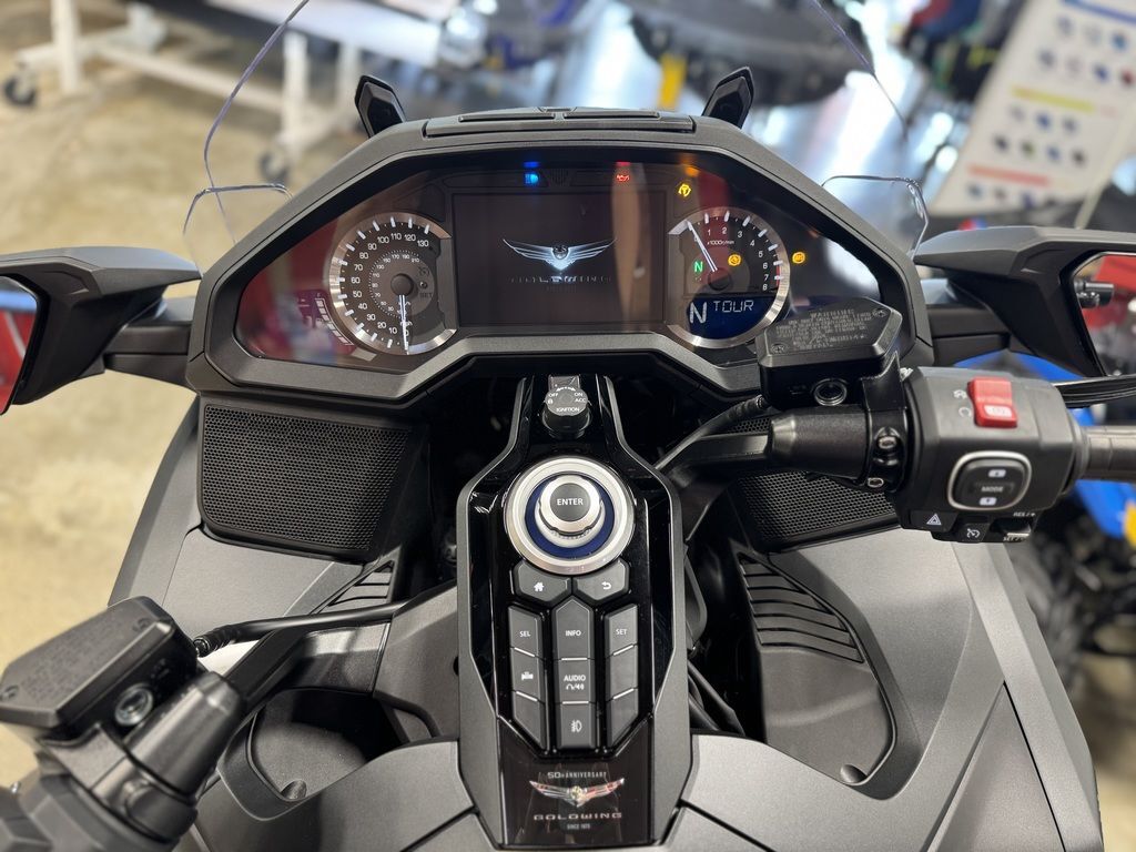 2025 Honda® Gold Wing 50th Anniversary Celebrating 50 years of flight Make the most of your future with the legendary lineup that’s been around for 50 years. The Gold Wing is known for flawlessly combining performance with luxury, innovation with heritage, and style with substance. Choose between manual or automatic gearboxes and experience what it’s like to fly. Features may include: Engine The horizontally opposed six-cylinder engine is famously smooth and powerful. The latest version is an 1833cc design that’s over 13 pounds lighter than previous generations (more than eight pounds less for our DCT trims). Special 50th Anniversary Edition 2025 is a year to celebrate—50 years since the original Gold Wing first revolutionized the world of motorcycle touring. That’s why we’re producing a special 50th Anniversary model, with exclusive graphics and a “since 1975” opening sequence on the instrument display. Exclusive 50th anniversary commemorative book and tabletop model To celebrate the 50th anniversary of the Gold Wing, we’re giving every Anniversary Edition purchaser a specially commissioned 192-page hardbound book with slip case commemorating the history of the Gold Wing, and what it means to its riders. In addition, they’ll also receive a 3D, 1/12-scale tabletop model celebrating the 1975/2025 Gold Wing. Supplies are limited so get into your local dealer to secure your new 50th Anniversary Gold Wing and commemorative memorabilia. Double-wishbone front suspension The radical double-wishbone front suspension delivers stellar handling and gives the bike a sleek, sporty appearance. The innovative design changes the wheel's path, letting us move both the engine and rider/passenger closer to the front wheel.