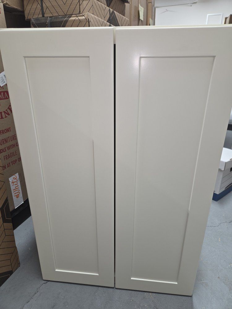 Had a supplier of amazing cabinets that painted the wrong color. These are beautifully made and painted. It was slightly off from the shade the customer wanted. 6 feet of bases and uppers. Upper are 36" tall. Countertop and island parts not included. Picture is the color of the cabinets. $5100 in retail value.