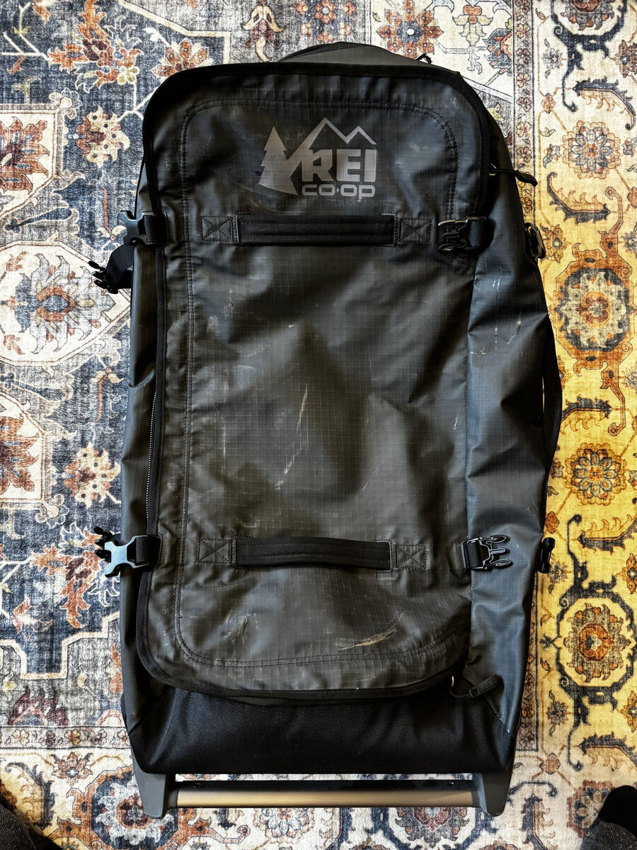 Great rolling duffel. Lightly used a few times for domestic travel. Can fit a full two burner camp stove and tons of gear! Just downsizing my gearroom.