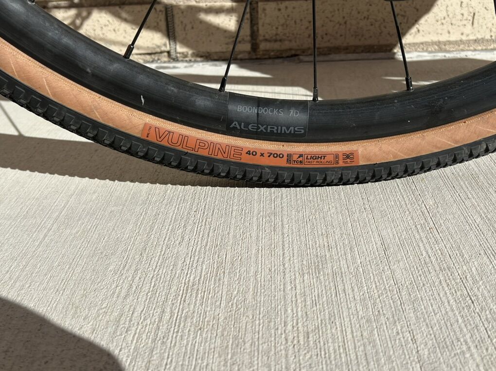 700Cx40mm WTB tires Electronic GRX Di2 11 speed 48/31 crankset with 11-34 cassette Ritchie venture handle bars 143mm specialized Roman saddle Shimano 160mm rotors