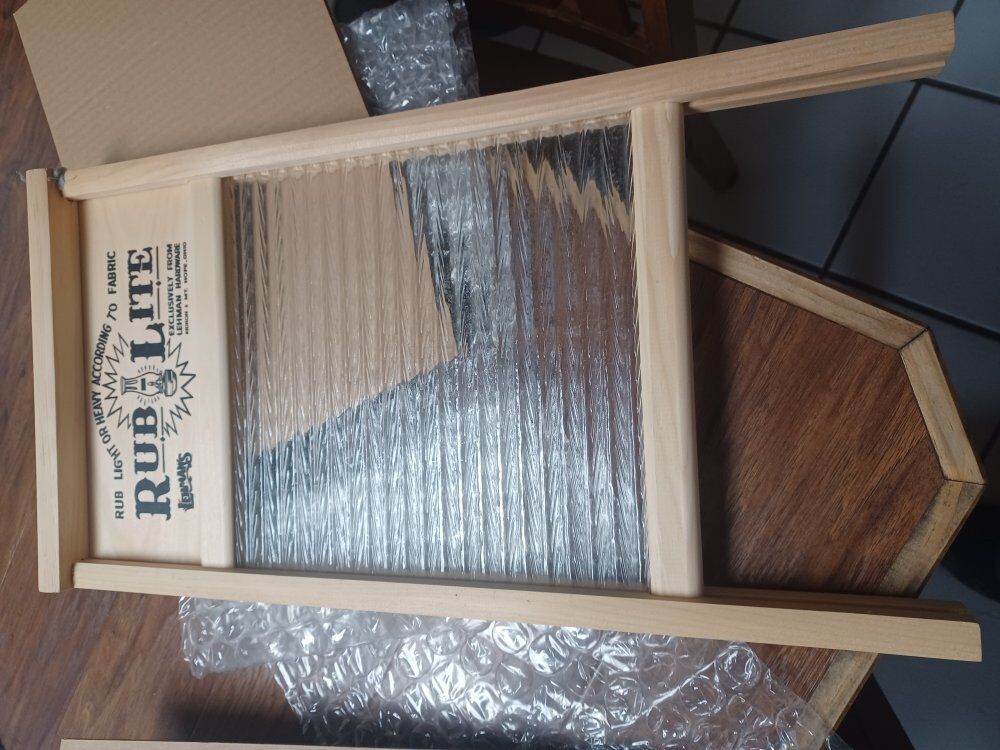 Really cool old fashioned thick glass ribbed washboard. New, never used. Perfect for decorating or actual use. Very well made. Hard to find the glass ones. Cash only, local pickup only. First come first served, no holds. My phone is turned off while I'm at work, so be patient and I'll get back to you when I can.
