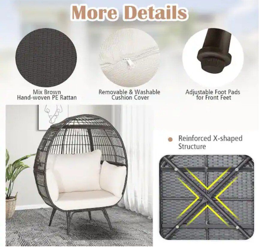 Pleasing to the eye: designed with special open-weave patterns, this oversized egg chair adds a bohemian addition to your home decoration, whether it is indoors or outdoors, besides, the egg shape makes extra aesthetics while wrapping you in its comfy structure.