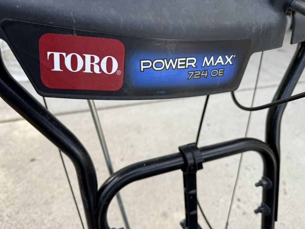VenmoToro Power Max 724 OE two stage snowblower. It was purchased new about six or seven years ago and only got used twice. I just pulled it out cleaned it up fired it up. Everything‘s working good everything‘s in good condition. It probably has an hour of total run time on it. It’s just like brand new but it’s been sitting out in the sun and some of the plastic is faded a little bit. this is as close as you can get to a new snowblower without paying full price.. model 37775 true 2 stage start right up on the first pull also has electric start haven’t used it These are going for anywhere between 1000 and 1200 now we’re asking 650