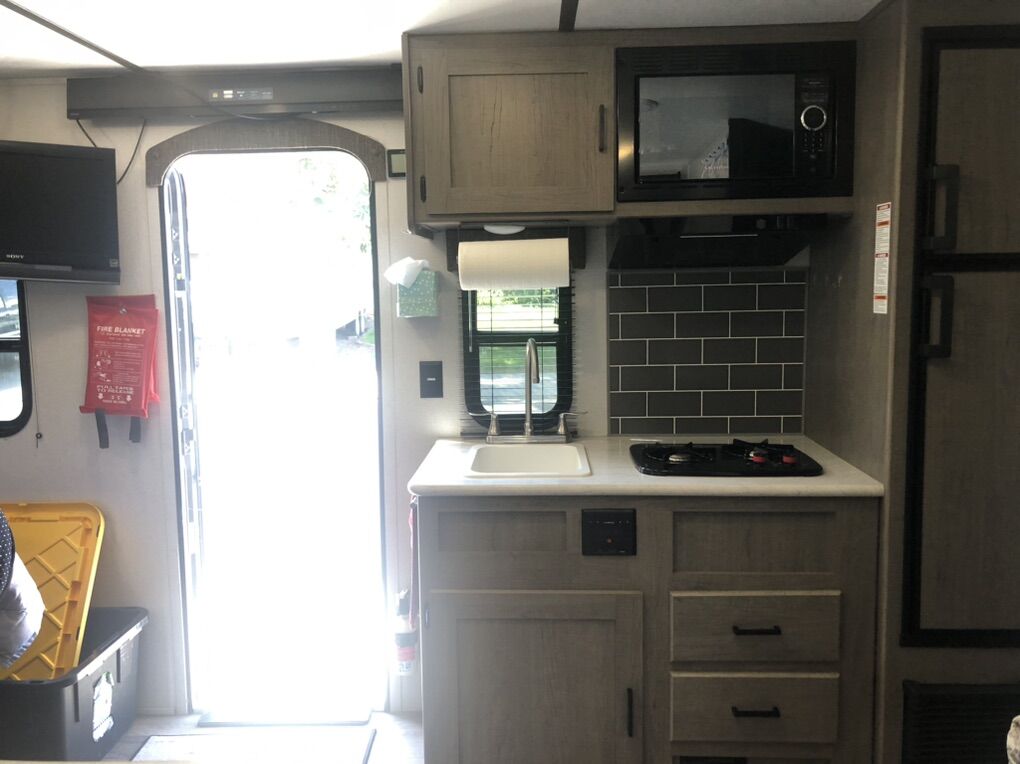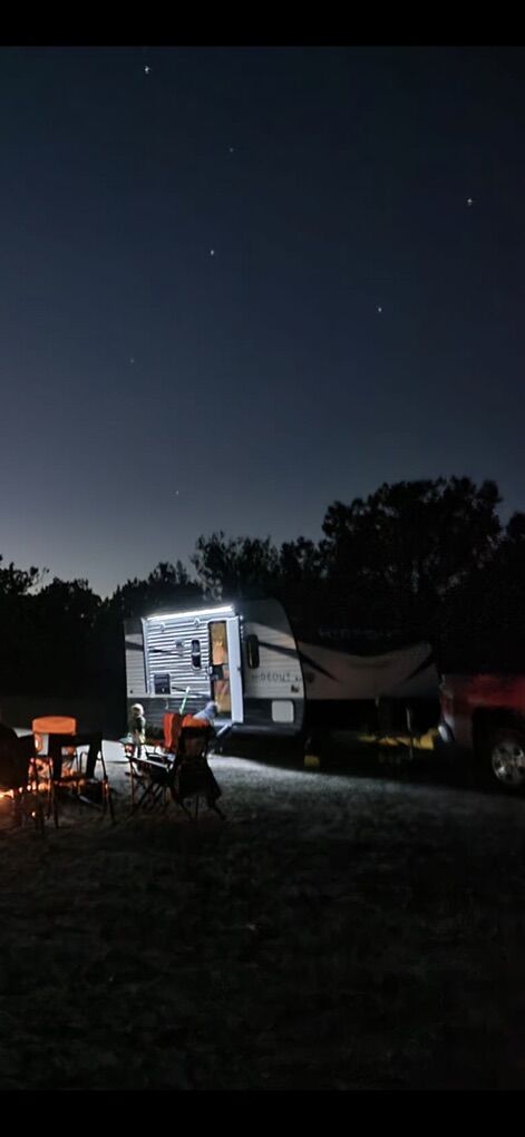 Has 2 brand new batteries in July 2025, new tires May 2024, new seam trim July 2025, new propane bottle July 2025, and roof sealed July 2025. Power awning with led light strip on the outside. It’s always been covered in the winter time and will come with a cover (wind last year ripped a hole we tapped up). Winterized every year. Everything works inside and has never had an issue. Has a small dent on rear from previous owner (see pictures) but it doesn’t effect the trailer. This will come with the hitch, equalizer bars, and sway bar. Power awning in perfect shape with no rot or wear. Fridge is the larger version and ac unit blows cold air. Inside shower has never been used as we always used the outside one. Grey and black tank sprayed out after every trip and water heater drained after every trip. Trailer is a single axle trailer that is suv towable. Link below has the exact specs. Sale prices range from $14,000-$18,000. With all the upgrades and hitch included asking $17,500. Don’t pay dealer fees this is ready to camp in with a clean title in hand.