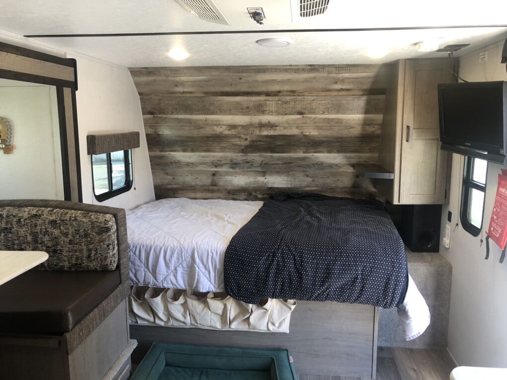 Upgrades: Flipped axles for better clearance Jack extender Upgraded pillow top mattress Memory foam in bunk beds Sony sound bar Sony tv Sony speaker Above sink cabinet in bathroom Fusion towing camera system Rear bumper hitch