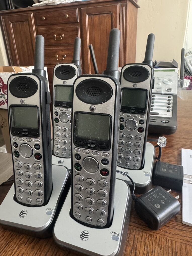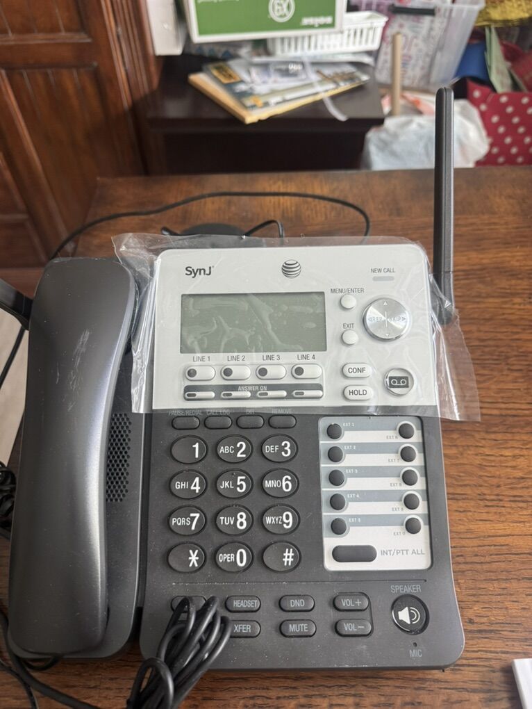 AT&T Synj cordless business phone system 1 Main phone 4 Cordless handhelds 4 Chargers All phones work. No issues. SYNJ-SB1