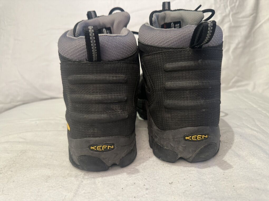 Keen men’s size 11 charcoal gray insulated waterproof winter boots that lace up the front similar to hiking boots. They are good to -25°. There are two scrapes to the fabric near the inside of the ankle. Other than that they are in great condition. See photos for detail details. I take cash or Venmo, but cash is preferred. Text is best. 801-201-4446. Check out my other ads for additional sizes and styles.