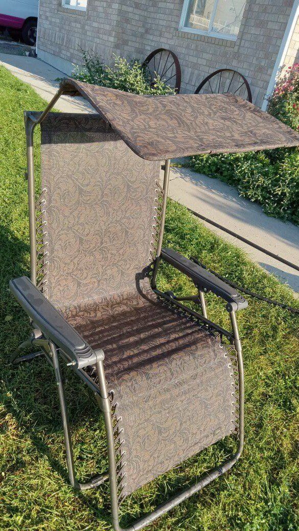 Venmo(Price reduced on 12/8) Up for sale is a Zero Gravity Brown Foldable Lounge Chair, Lawn Chair, or Picnic Lounger, plus attached shade panel. Outdoor furniture. This chair is in great condition.