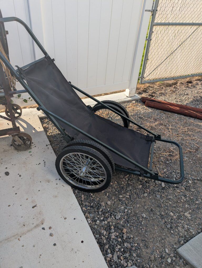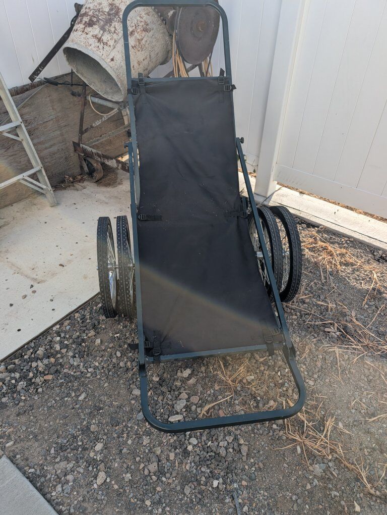 very heavy duty. elk and game cart is supposed to hold up to 1,200 lb. built for one or two men. folds down very small when not in use. has four very heavy duty tires. non-flat. has been taken to camp a few times but never carried any animal and now I'm 65 years old too old to go alone