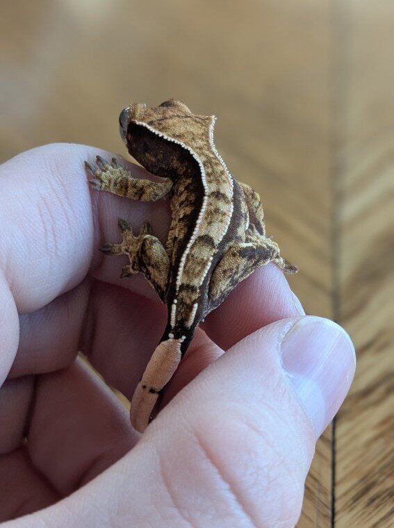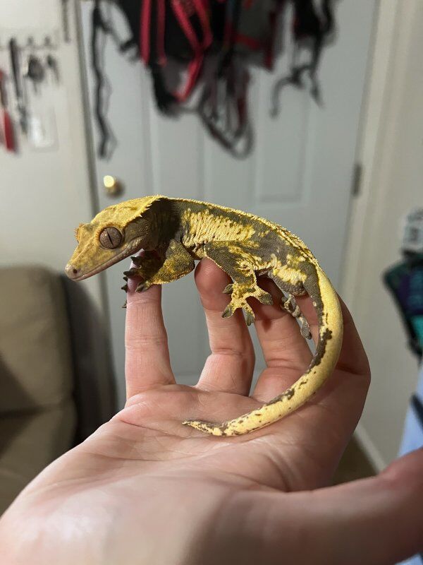 CashAppThis little guy/girl has a lot going on! Extreme Harlequin markings all over. It has some subtle red coloring and would probably throw red babies. He/she has been very socialized and loves getting out to play. Last two pictures are of the Mom and Dad. Hatched 7/26/25 Asking $150. I'm hesitant to let this one go, so price is firm.