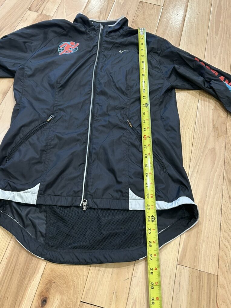 Nike Fit Portland Marathon October 4, 2009 Black Lightweight Jacket - Women’s Size Small - with back vent flap, long sleeved, zippered pockets and large back zipper pocket - great condition - pre-owned.