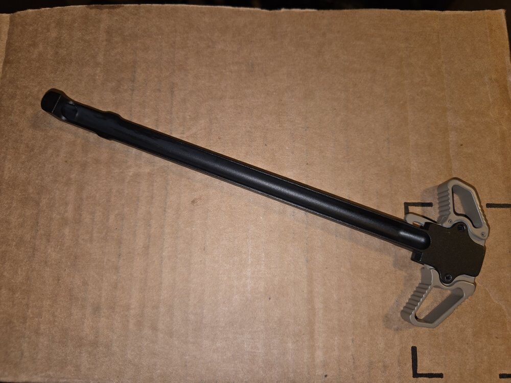 VenmoAmbi Charging Handle for an AR1O, LR3O8 and most SR25. The latches are FDE and the right side is an extended latch similar to the design of Radian charging handles. Bought this handle and another at the same time. When they arrived I decided I liked the other one more so I installed it and am selling this one.