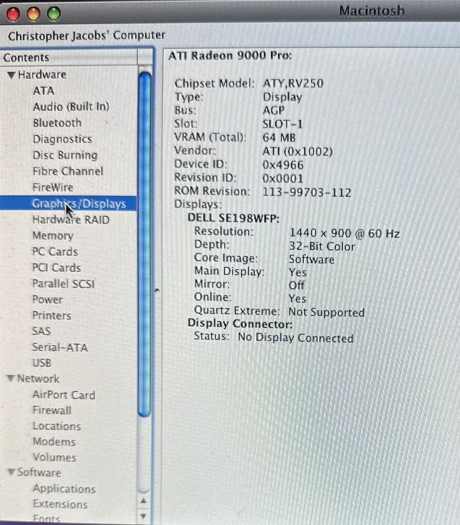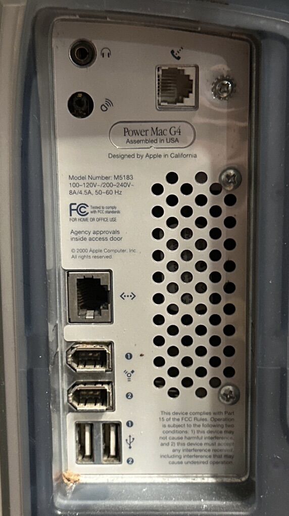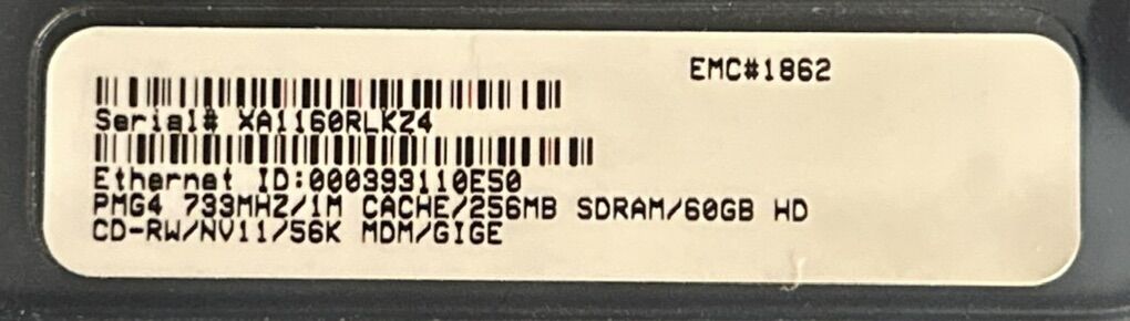 VenmoPower Mac G4( PowerMac3,4), 733 MHz PowerPC, 256MB RAM, ATl Radeon 9000 Pro, SONY CD-RW CRX140E, no hard drive.