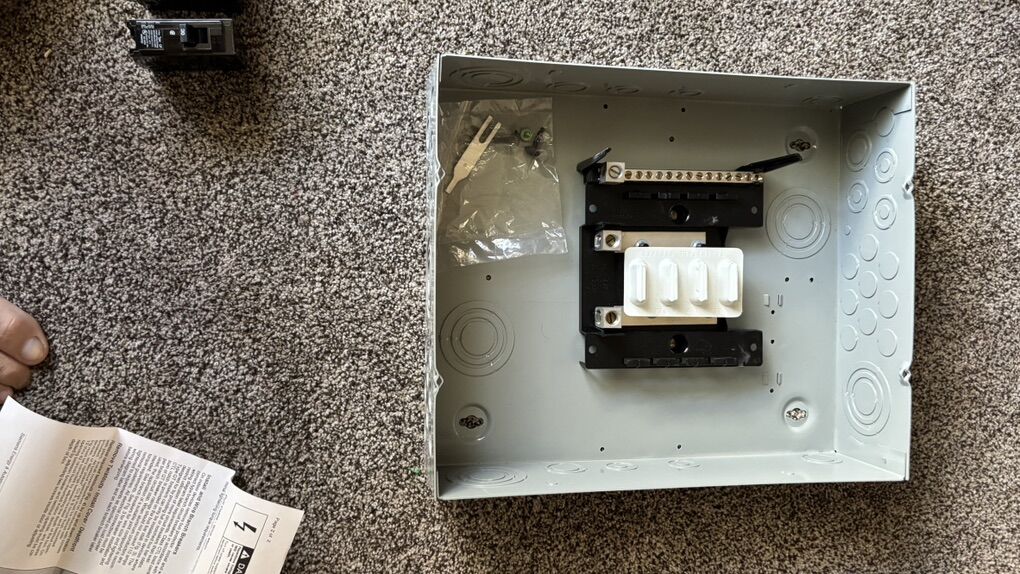 New with 2 breakers 125 amp load indoor box for extra building 1 30amp breaker 1 30amp 2 pole cp double breaker extra I bought when buying the box, everything is new never used