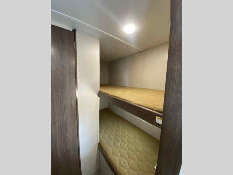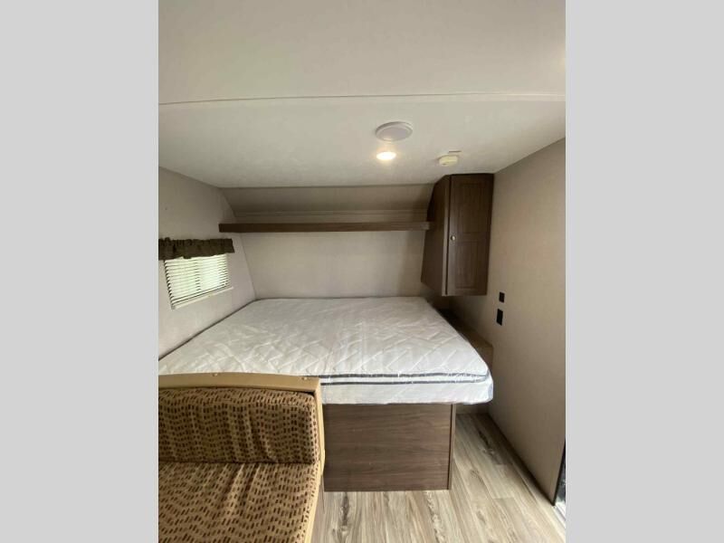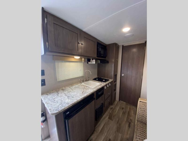 If you're looking for an RV that provides exceptional value, then you need this Hideout Single Axle travel trailer. From the queen-size bed to the set of bunk beds, this unit gives you all the room you need to sleep five people comfortably, and the booth dinette gives you a place for everyone to get together for meals and games. Having a full bathroom will be a huge benefit when you find yourself camping out in the middle of nowhere, and no one will go hungry during those trips because the two-burner range top will help you easily prepare all of your favorite dishes.