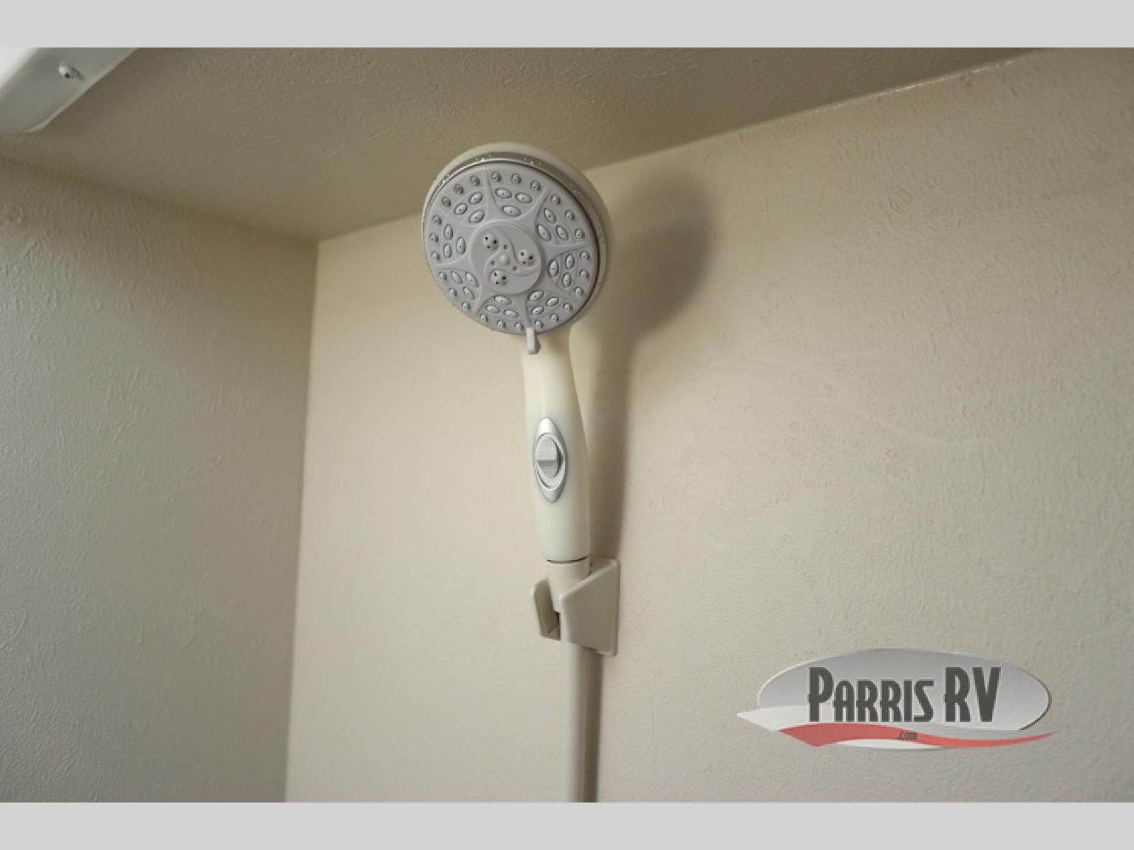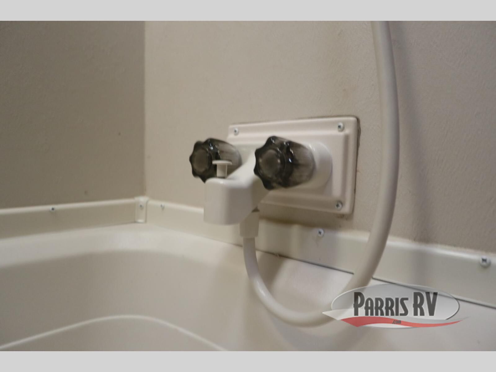 The bathroom is in the rear. You will find a shower, and toilet. Just outside of the bathroom there is a sink.