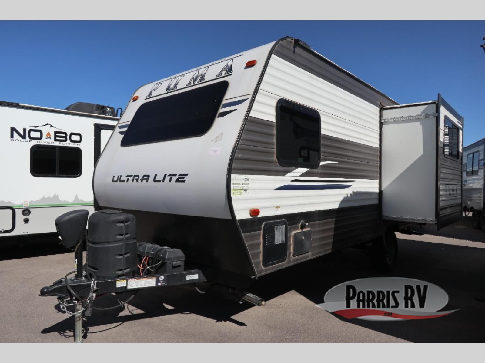 Go out on the adventure of a lifetime with this Puma Ultra Lite travel trailer! This trailer might be compact, but it provides lots of sleeping space with its fold-down bunk, booth dinette, sofa, and RV queen bed. Plus, you'll also have additional storage space for all of your gear with the overhead cabinets, dinette storage, pantry, and residential refrigerator. If you like to spend your time in the fresh air, then you'll certainly want to take advantage of the 14' electric awning outside, and the outside shower will allow you to rinse off your sticky fingers after you've just consumed a delicious roasted marshmallow.