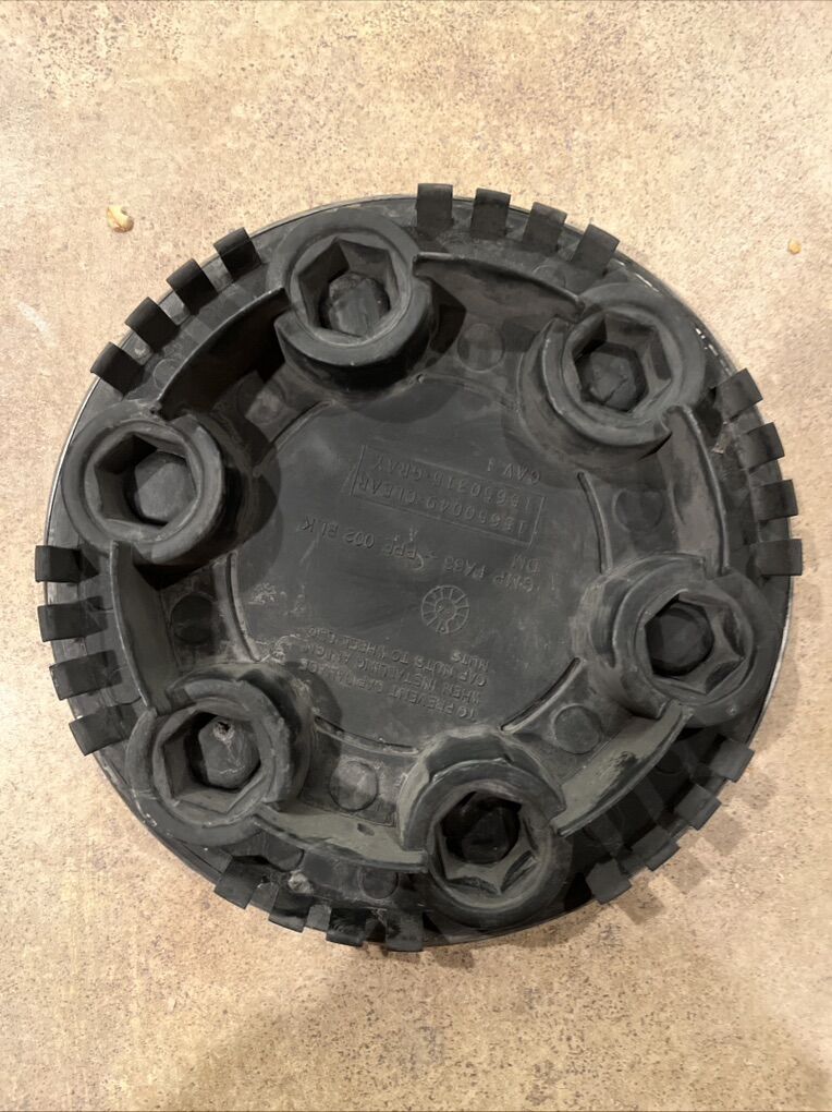 VenmoThe 1992-1999 GMC Chevy Silverado Suburban Tahoe wheel center cap 15650049 hubcap is a vintage part made of aluminum and plastic in a silver color finish.