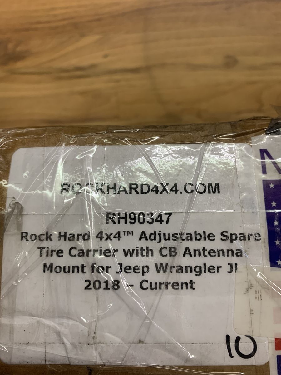 Rock Hard 4x4 Adjustable Spare Tire Carrier with CB Antenna Mount for JL Jeep Wrangler.